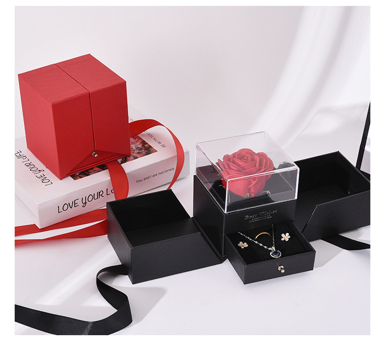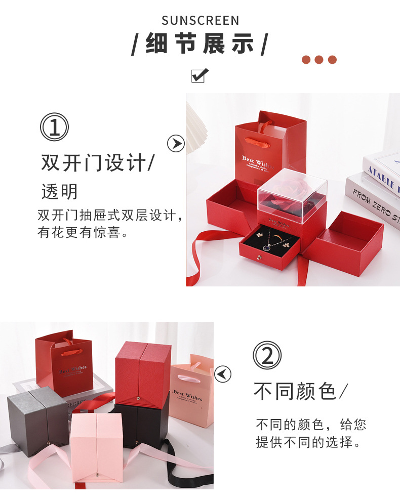 Specification model: Red; double-door gift box + flowers + gift bag + necklace lining (send greeting card)