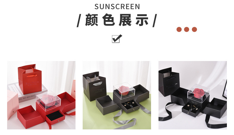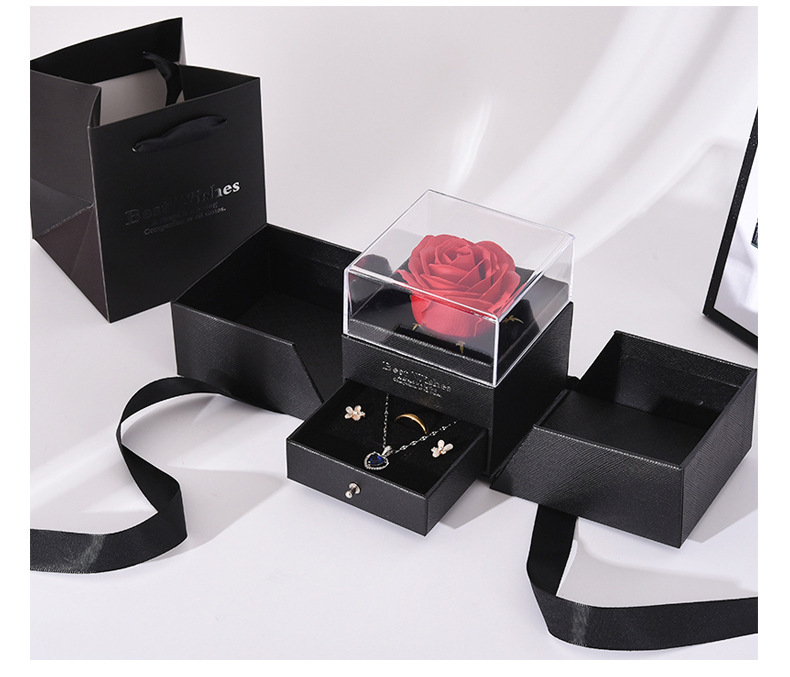 Specification model: Black; double-door gift box + flowers + gift bag + necklace lining (send greeting card)