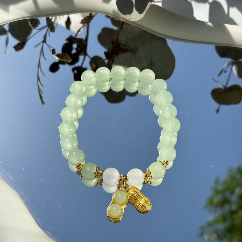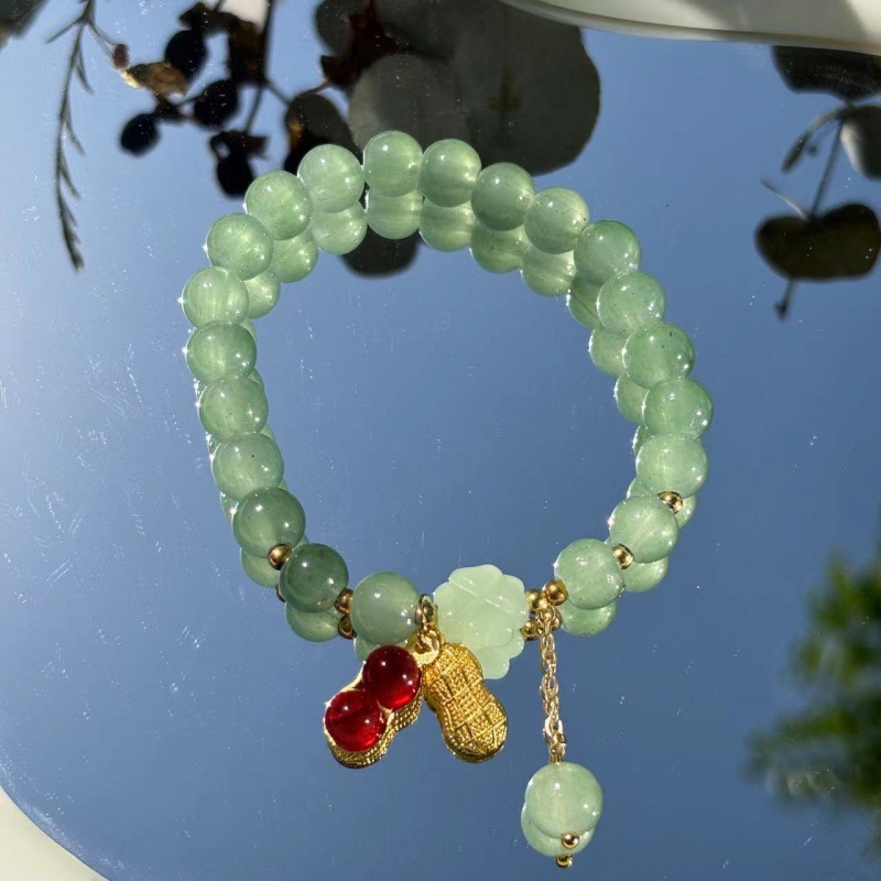 Color: S063-imitation natural green agate good thing peanut bracelet#Sz–516