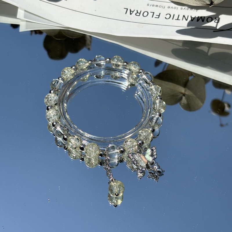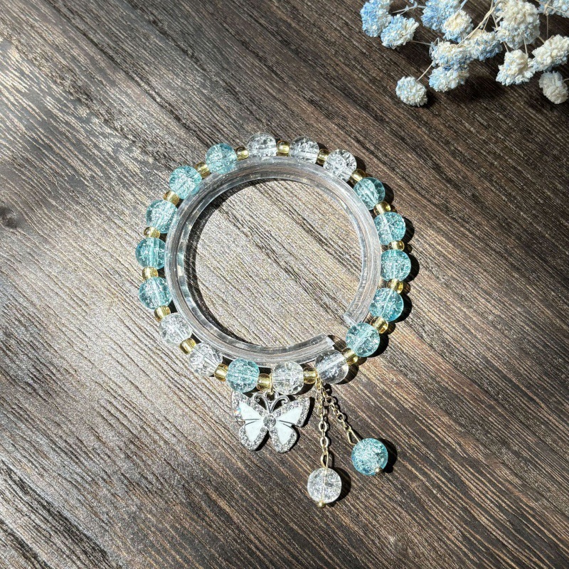 Color: S013-light blue butterfly pendant pearl explosion bracelet#Sz152
