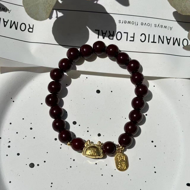 Color: Cinnabar red lucky dragon dumpling bracelet#Size 339