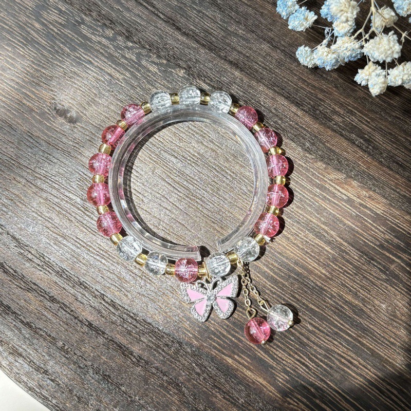 Color: S024-explosive diamond butterfly pink bracelet#Sz–208