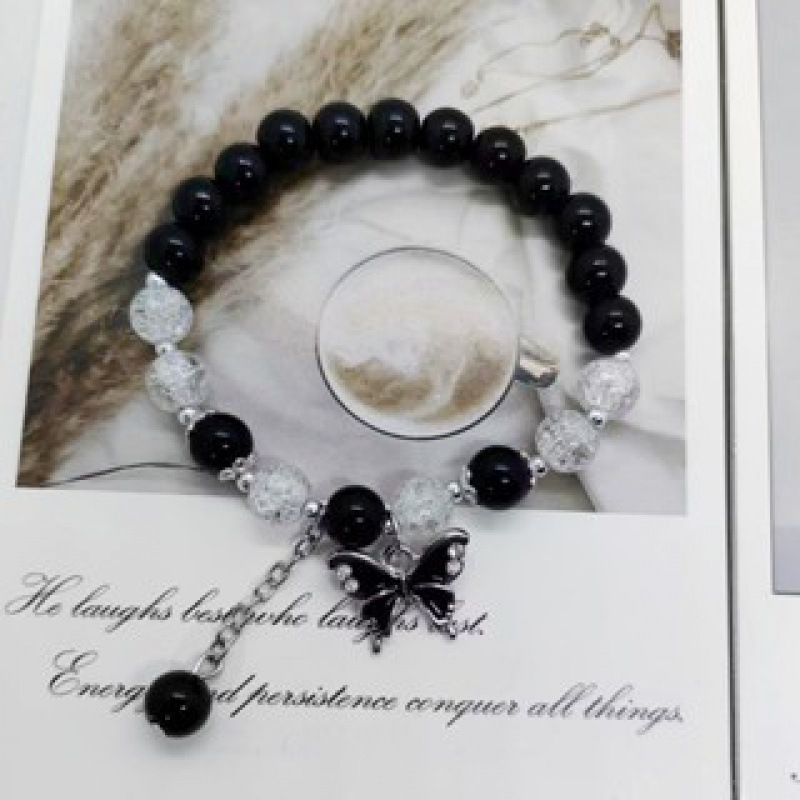 Color: S055-black explosive butterfly beaded bracelet # Sz457