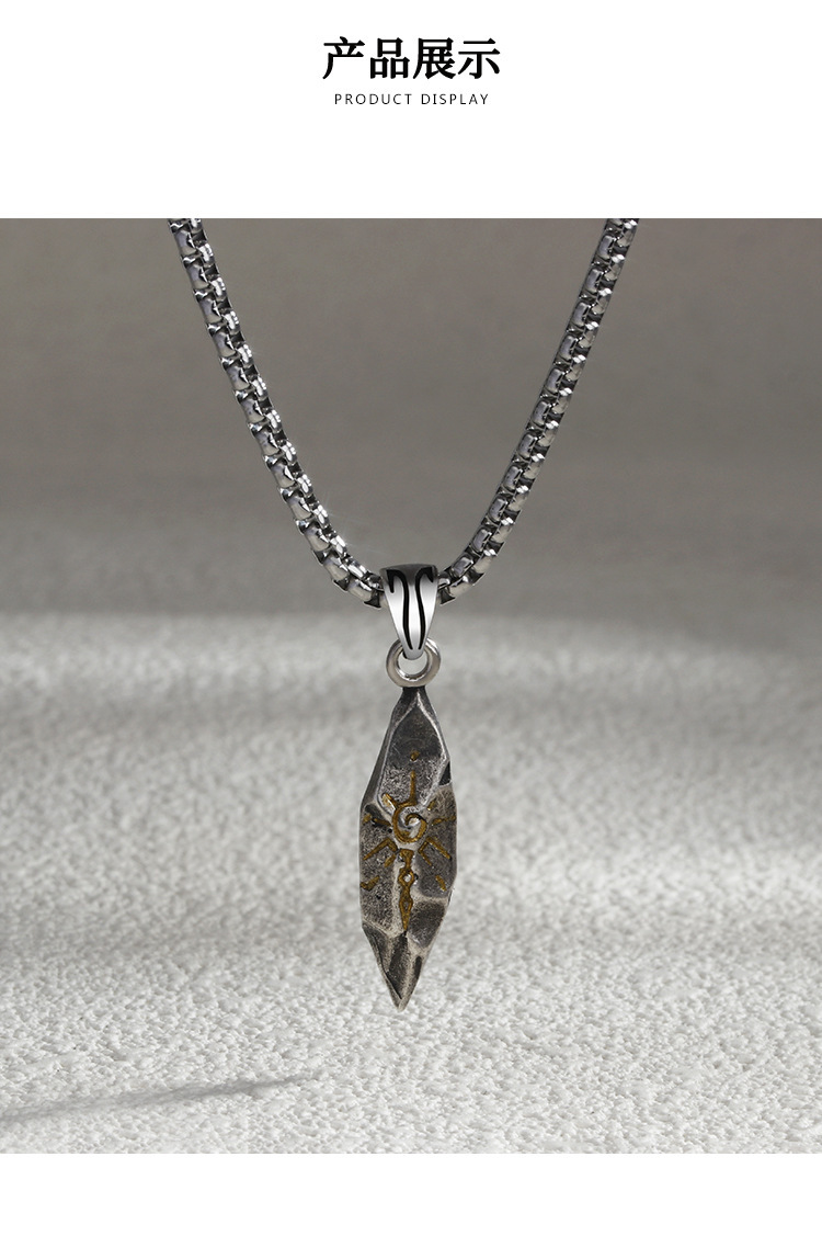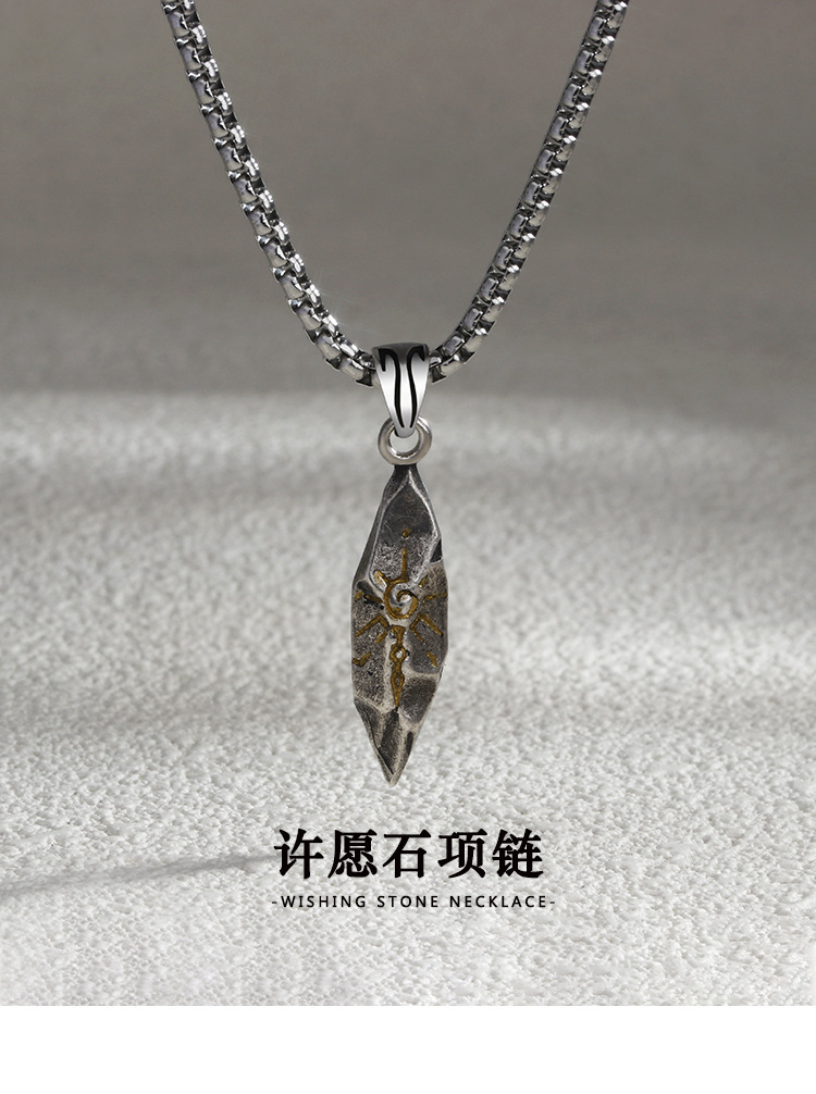 Vintage Wishing Stone Necklace Trendy Men's Personalized Neutral Style Meteorite Color Matching Pendant Men's Hip-hop Woolen Chain Accessories