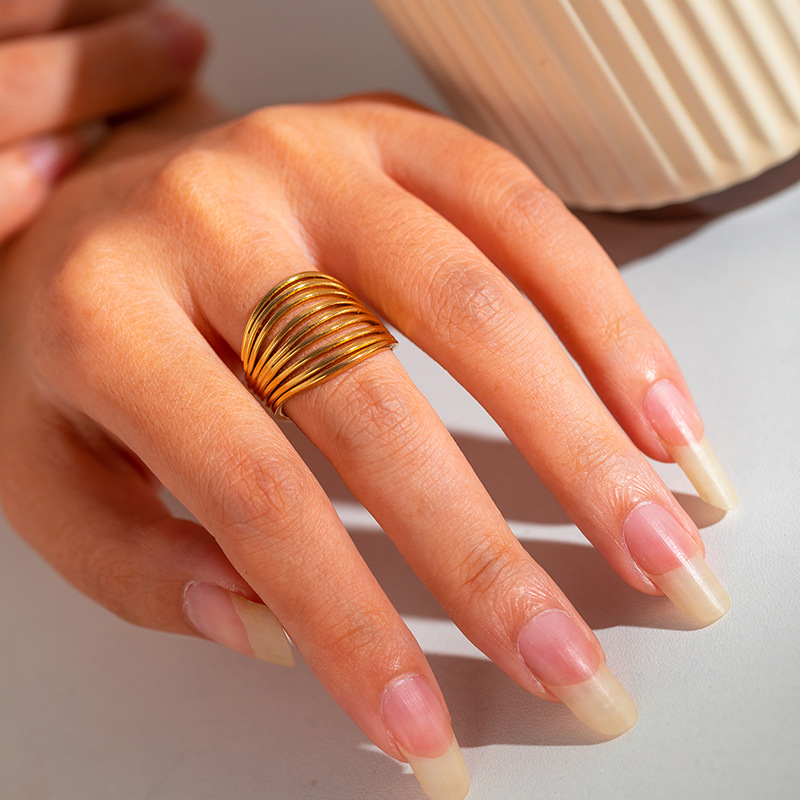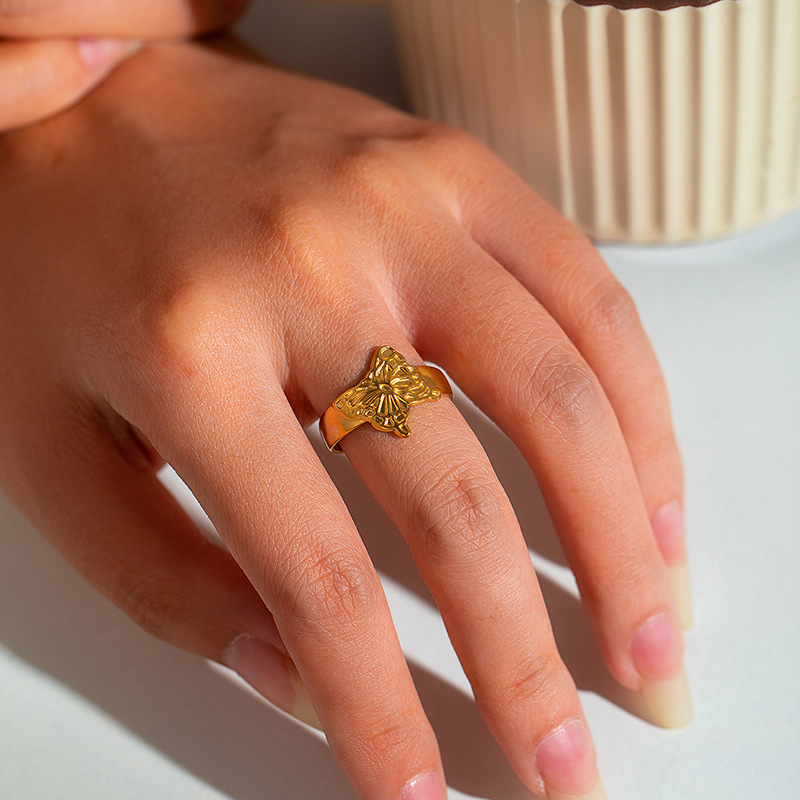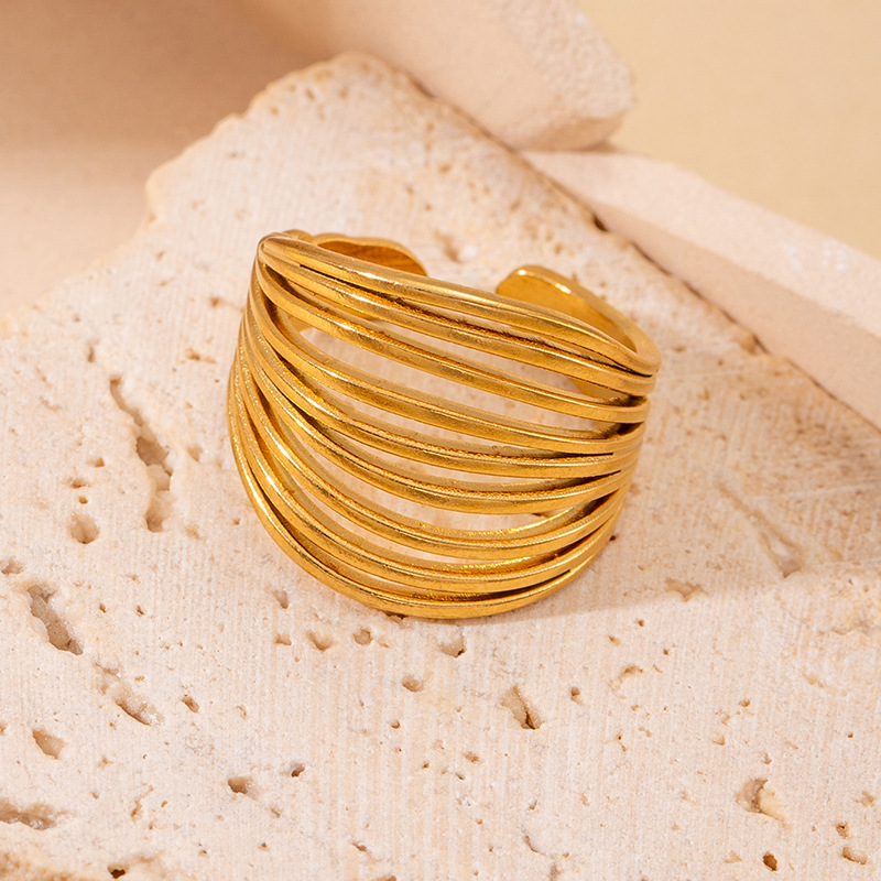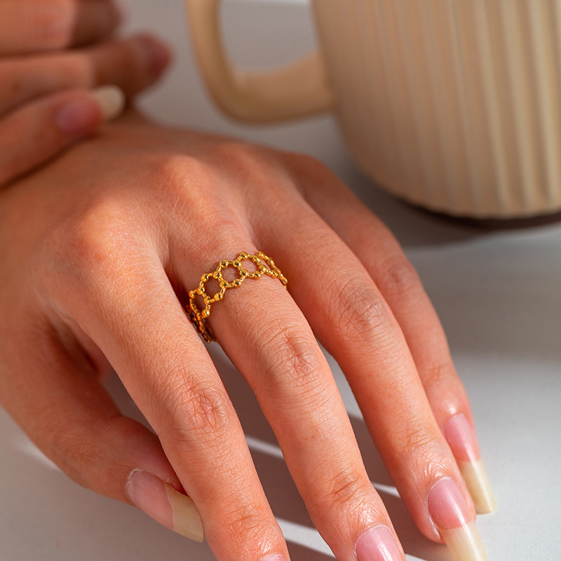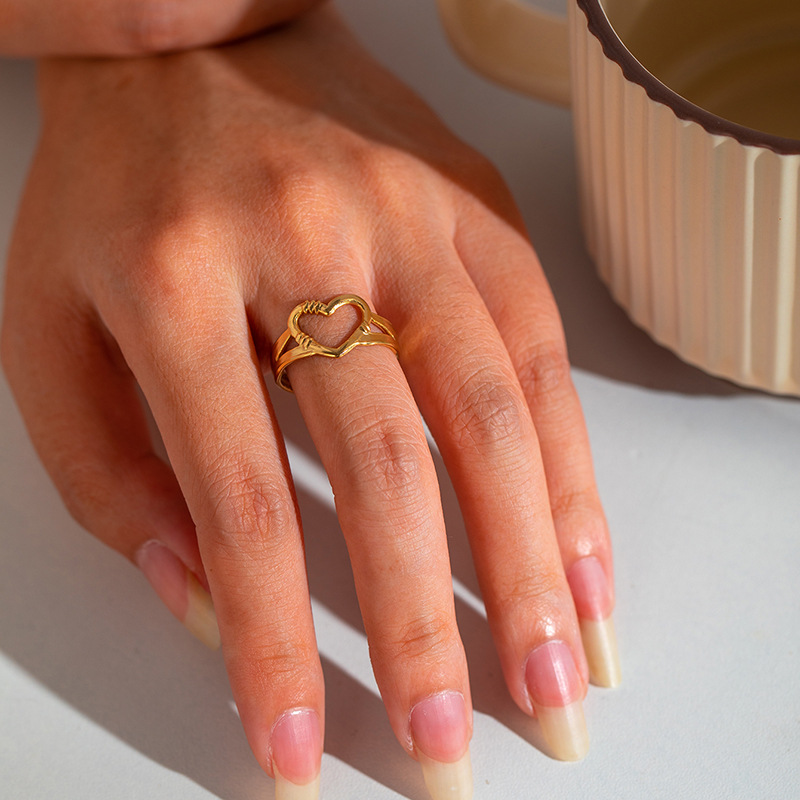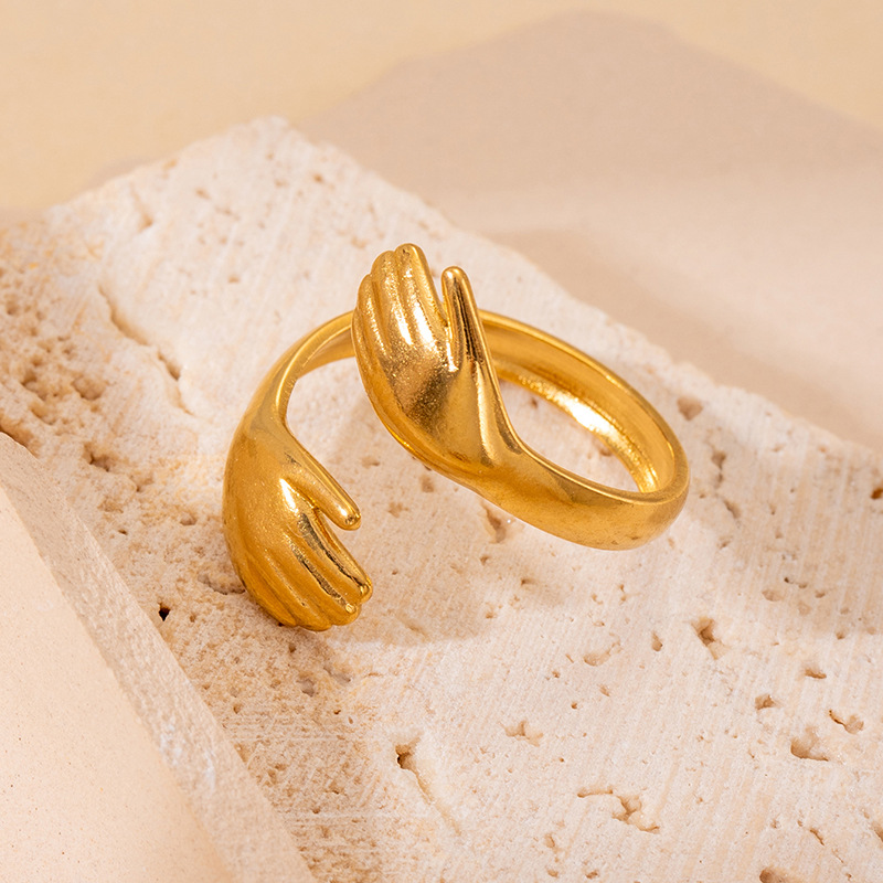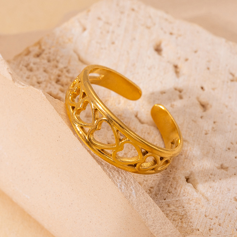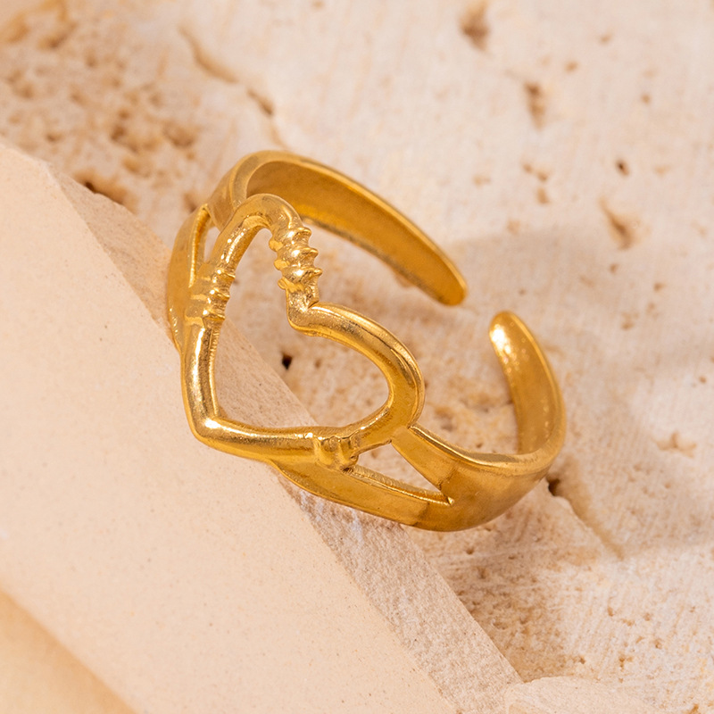 Titanium Steel Open Ring Trendy Ring Women's Open Love Geometric Palm Non-Fading European and American Cross-Border Stainless Steel Ring