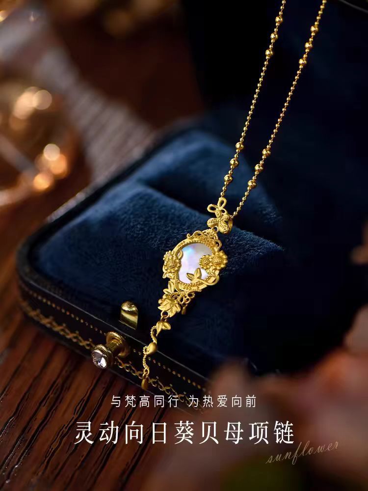 Smart Sunflower Fritillaria Necklace Earrings Set Vietnamese Sand Gold Gold Color Wedding Pendant Jewelry Wholesale