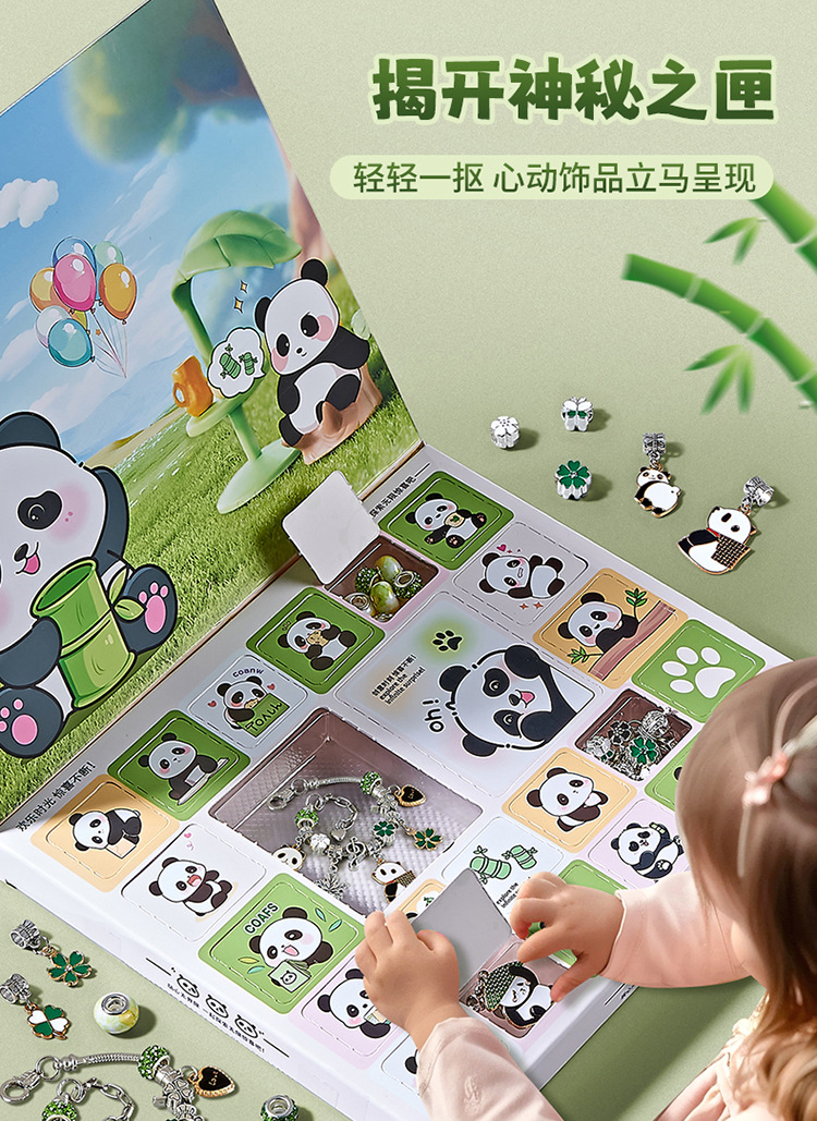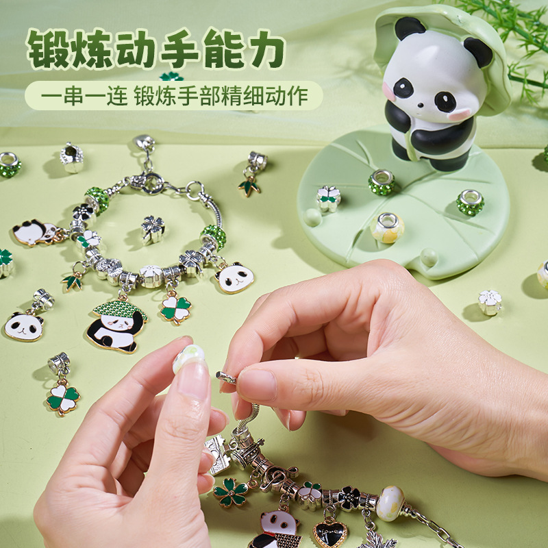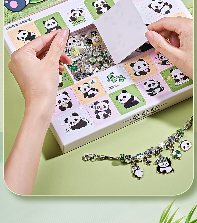 Children's Beading Hole-Punching DIY Materials Birthday Gift Girl Toy Panda Bracelet Gift Box Poke Fun 6 Blind Box