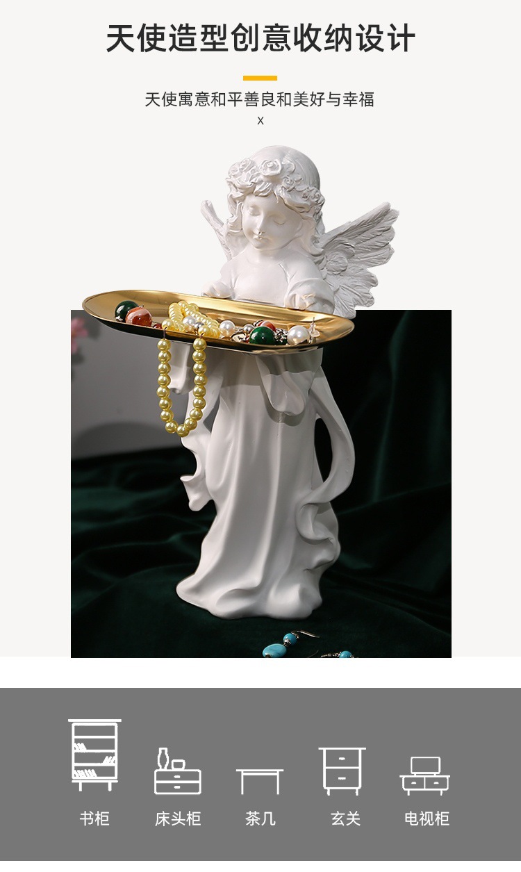European Style Jewelry Key Storage Porch Ornaments Alice Angel Tray Resin Sculpture Creative Decoration