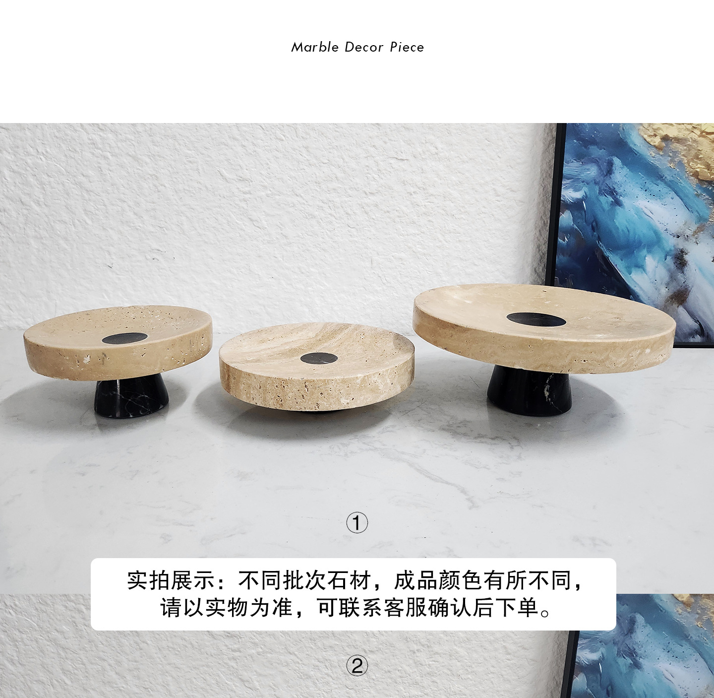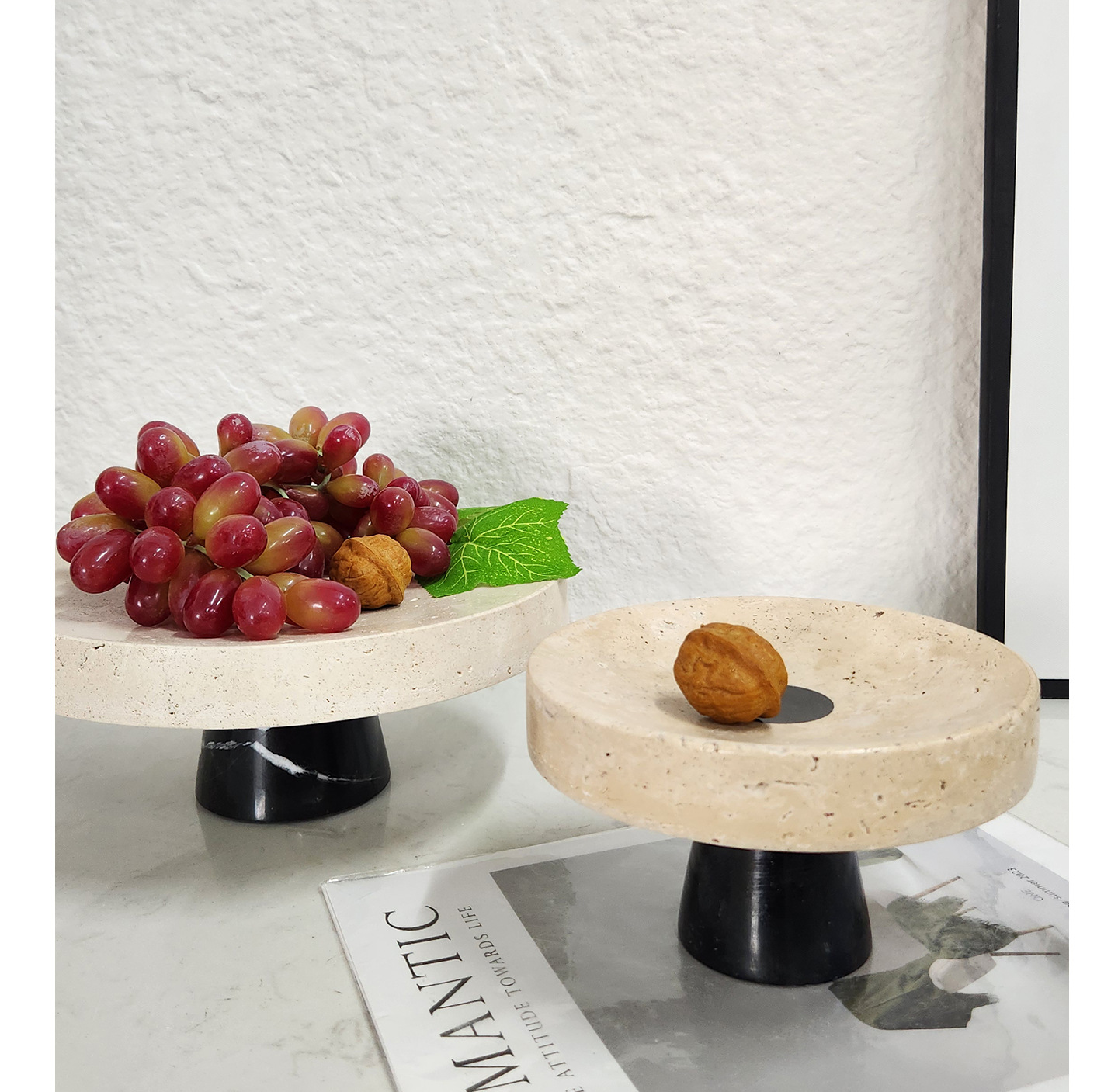 Light Luxury Simple Natural Marble Tray Home Decorations Ornaments Living Room Model Room Decorative Tray Fruit Plate