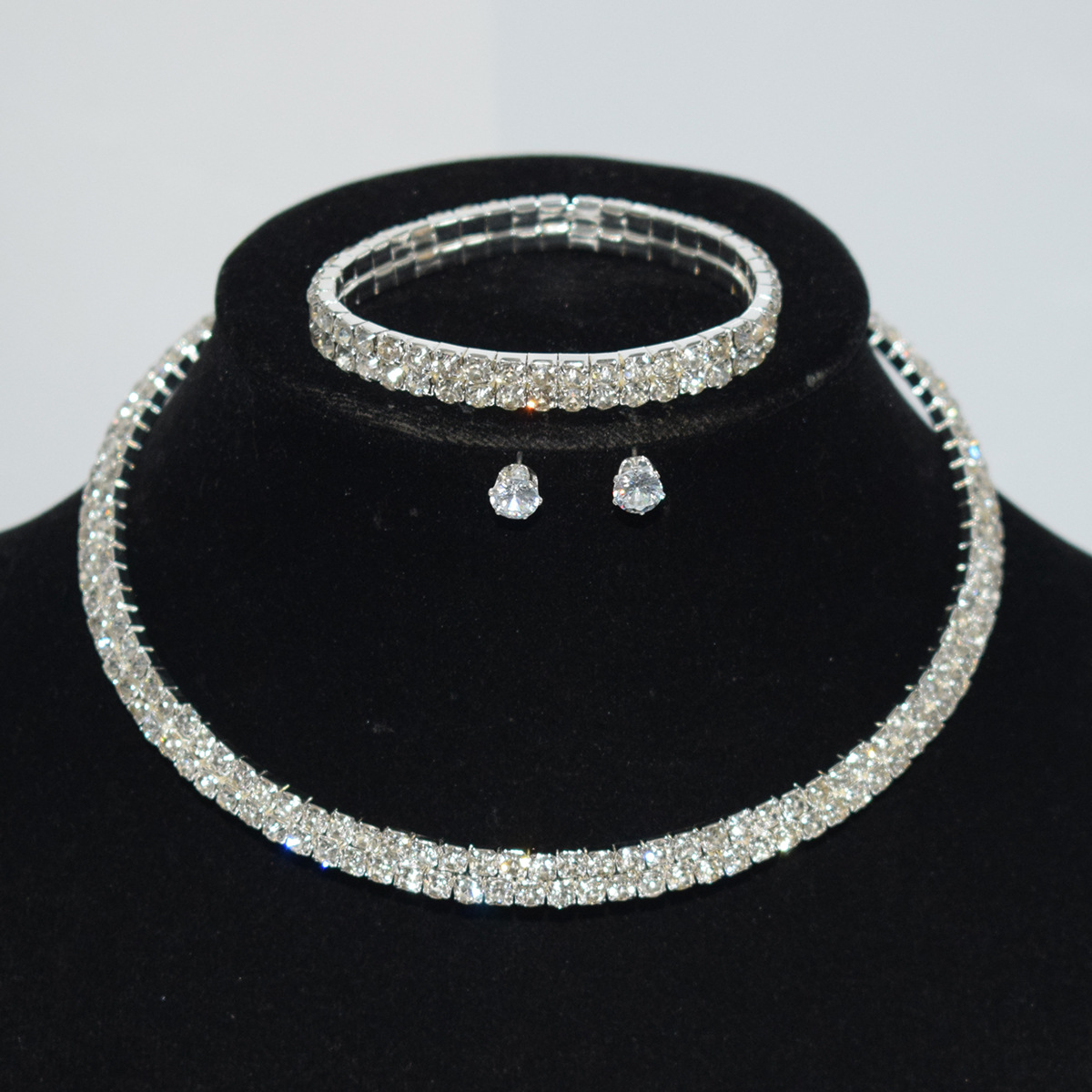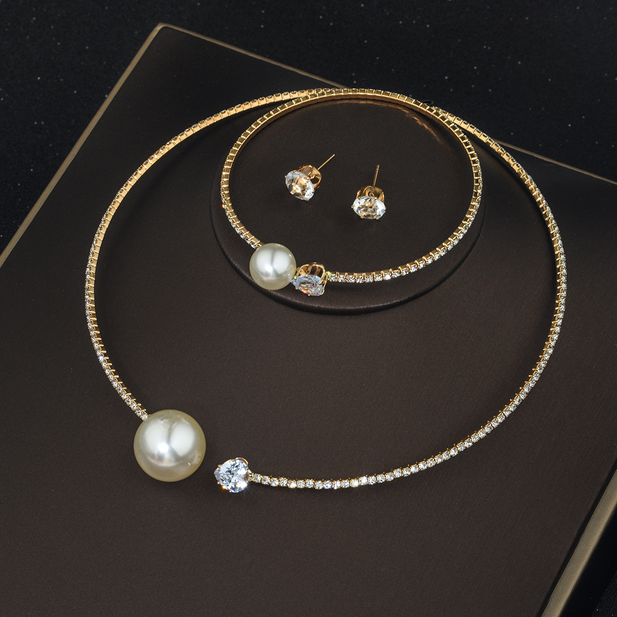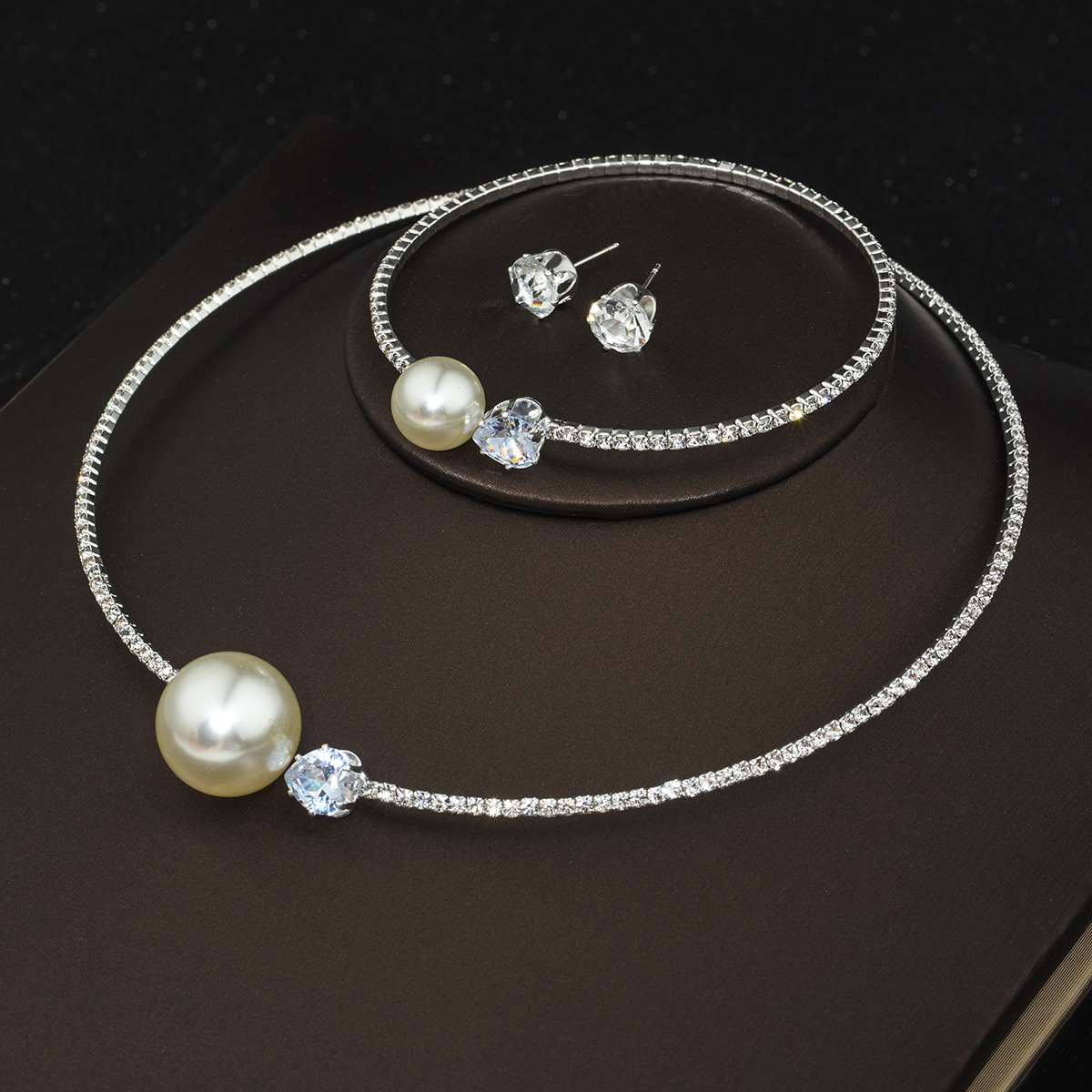 Item No.: Pearl Rhinestone Necklace Earrings Bracelet Set