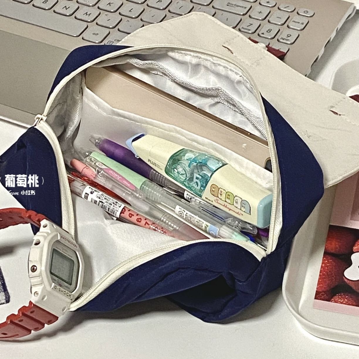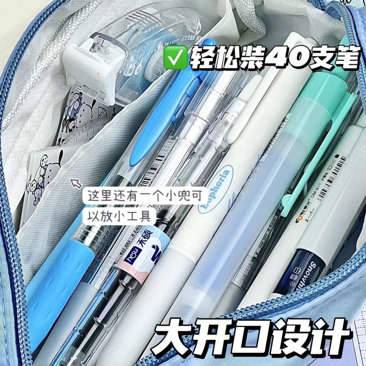 Color: Portable snow white blue and white pencil case