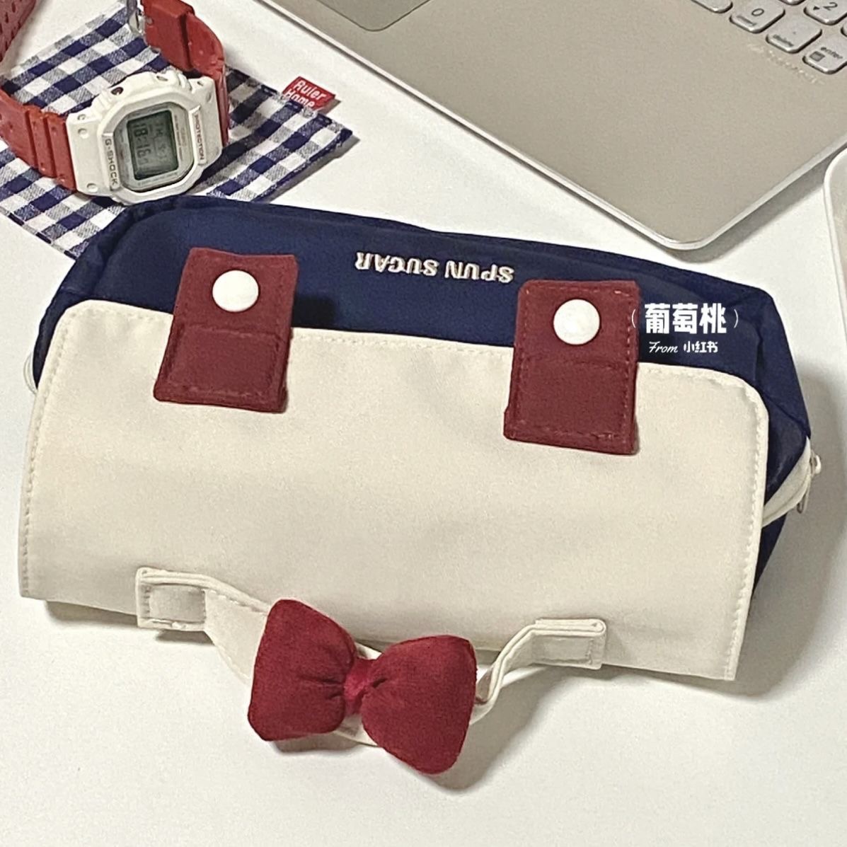 Xiaohongshu Same Style Japanese Style Bow ins Large Capacity Multi-layer Flip Student Cute Stationery Bag Pencil Case