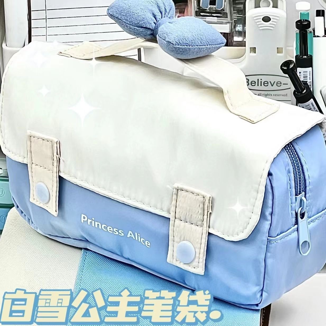 Portable snow white blue and white pencil case