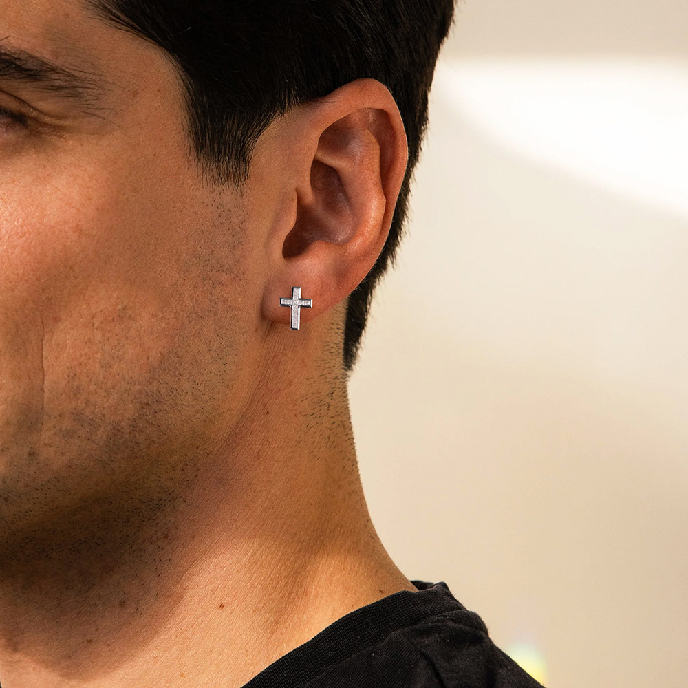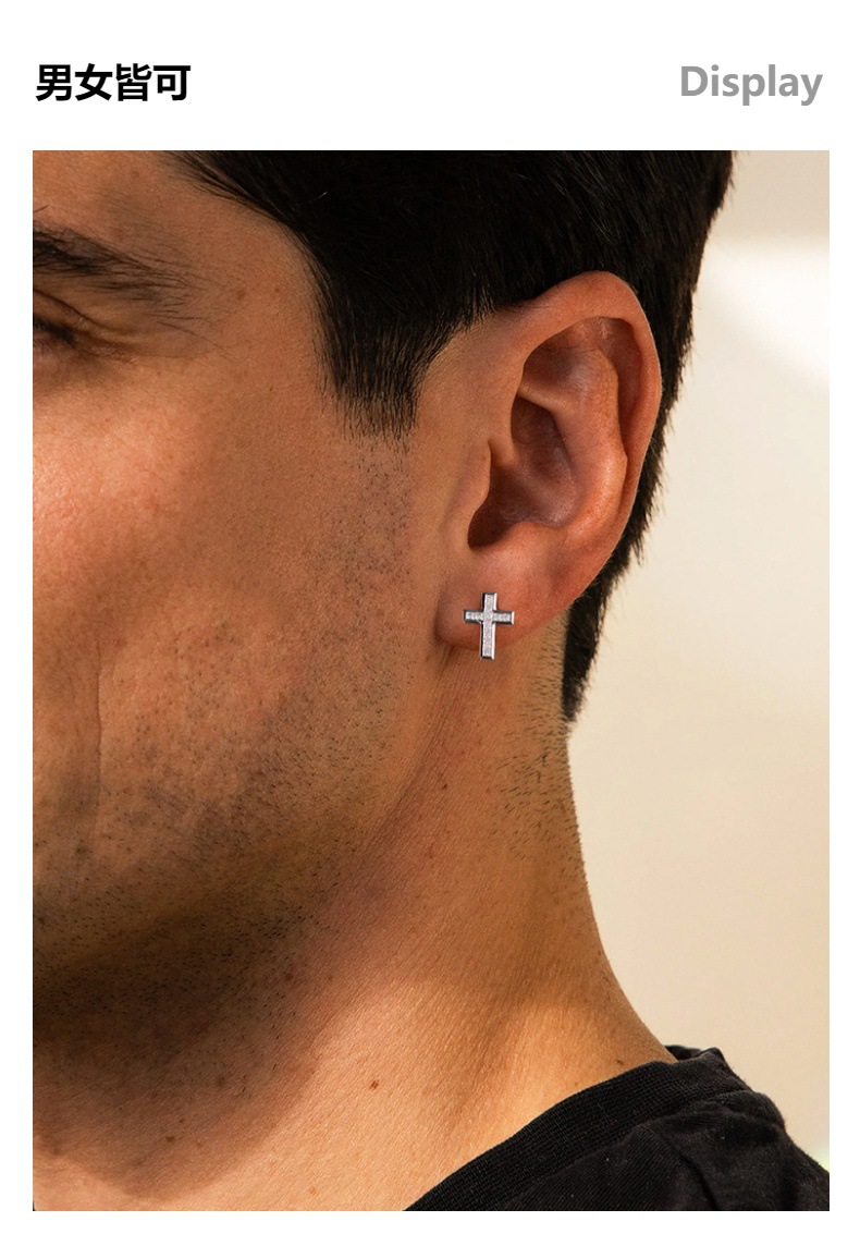 Cross-border European and American fashion S925 sterling silver moissanite cross earrings fashion temperament princess cut diamond earrings