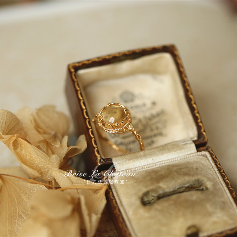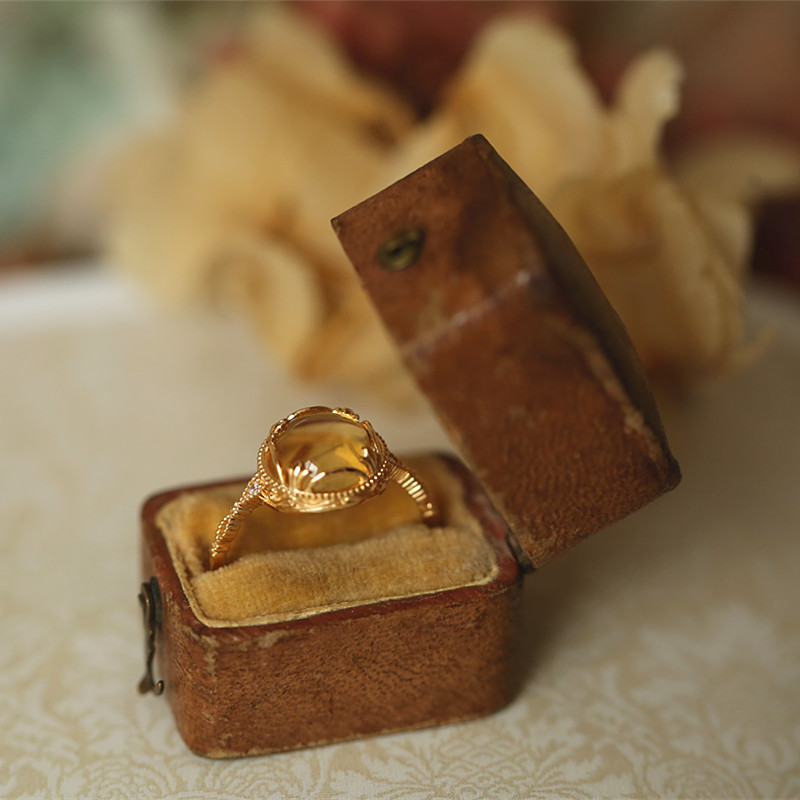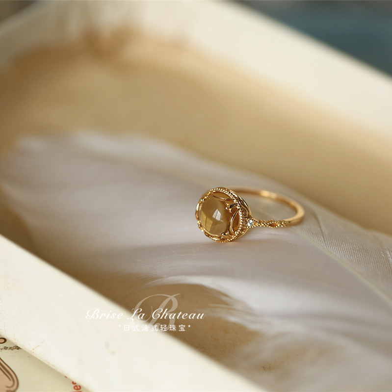 Honey Money Unstoppable Goddess Simple Lace Pattern Natural Egg Face Yellow Crystal Same Style Light Luxury All-match Ring