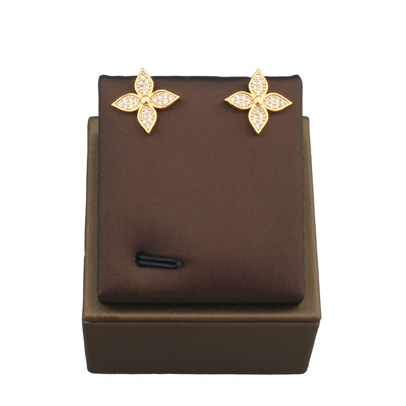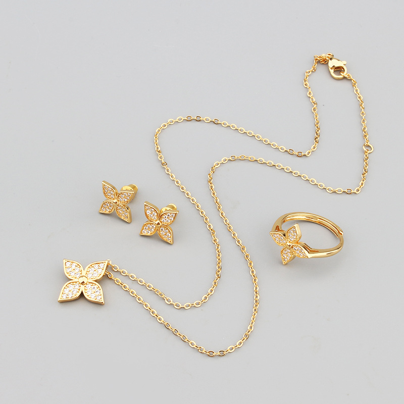 European and American Court Style Golden Flat Diamond Four-leaf Clover suit Lucky Women's Necklace Ring Earrings Full of Zircon Jewelry