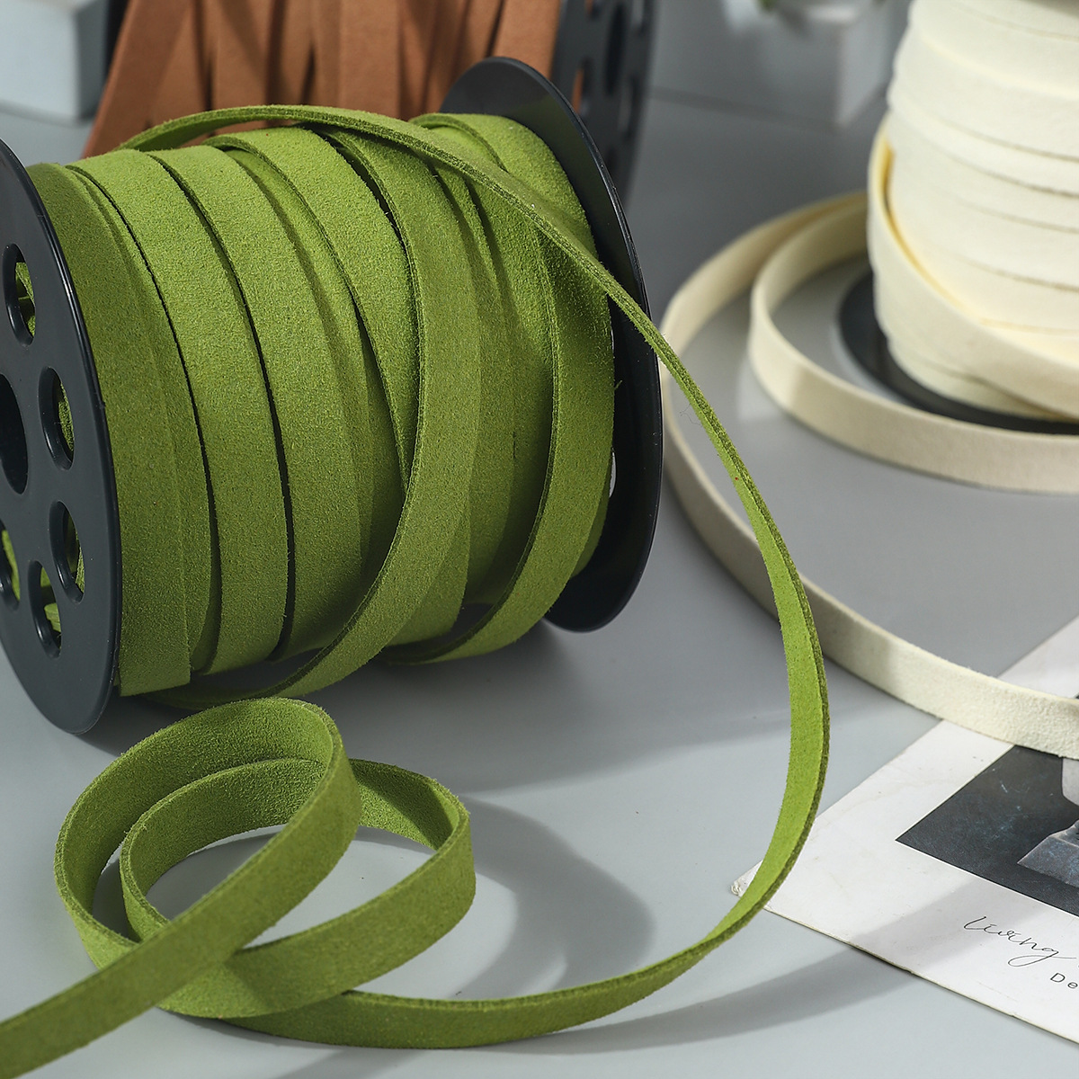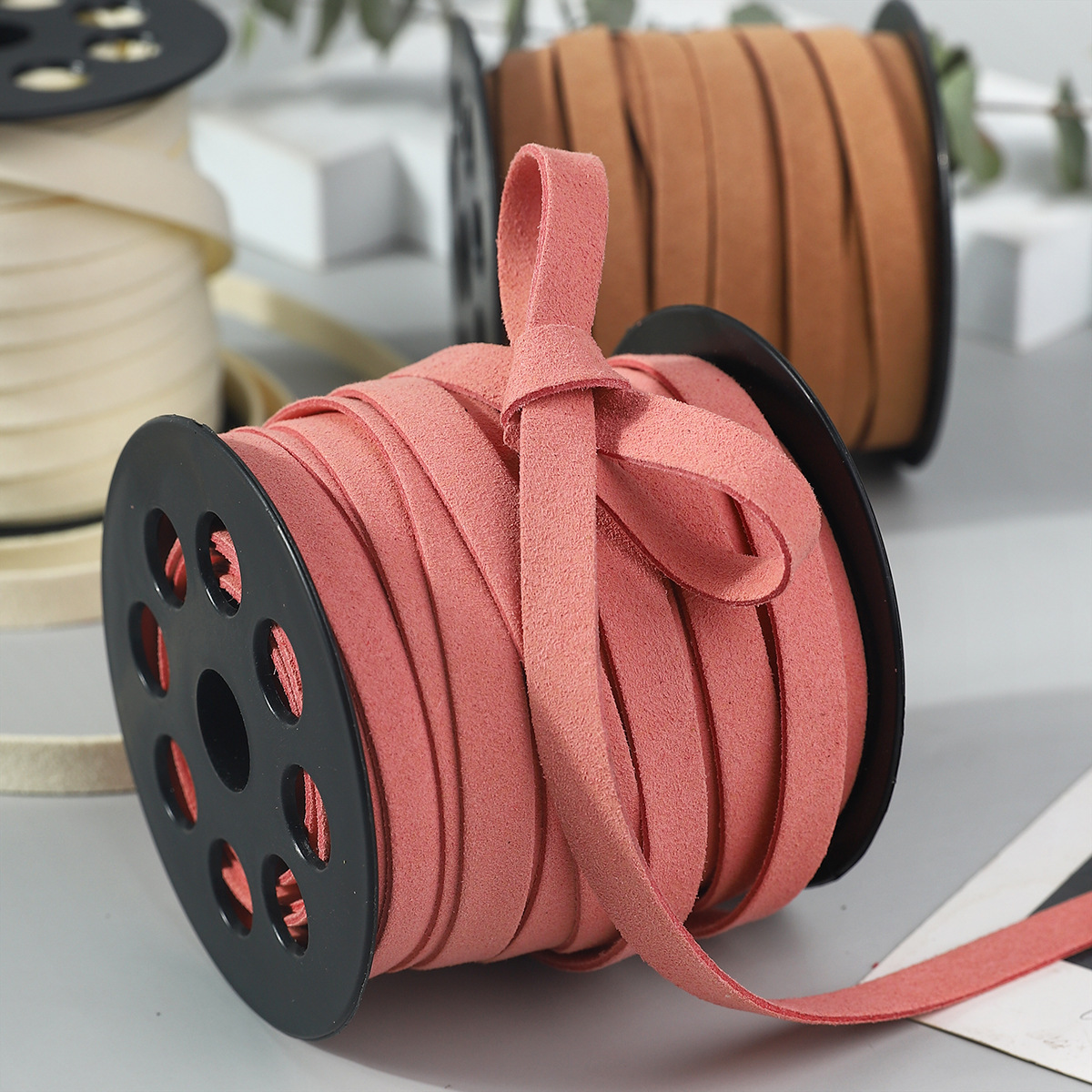1cm Deerskin Cord Suede Leather Cord Ribbon Flower Cake Gift Box Tie Handmade DIY Material Bow