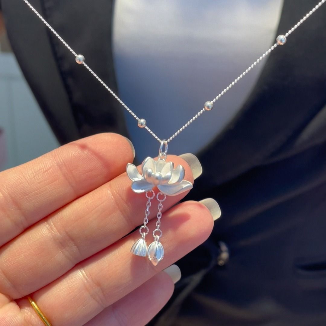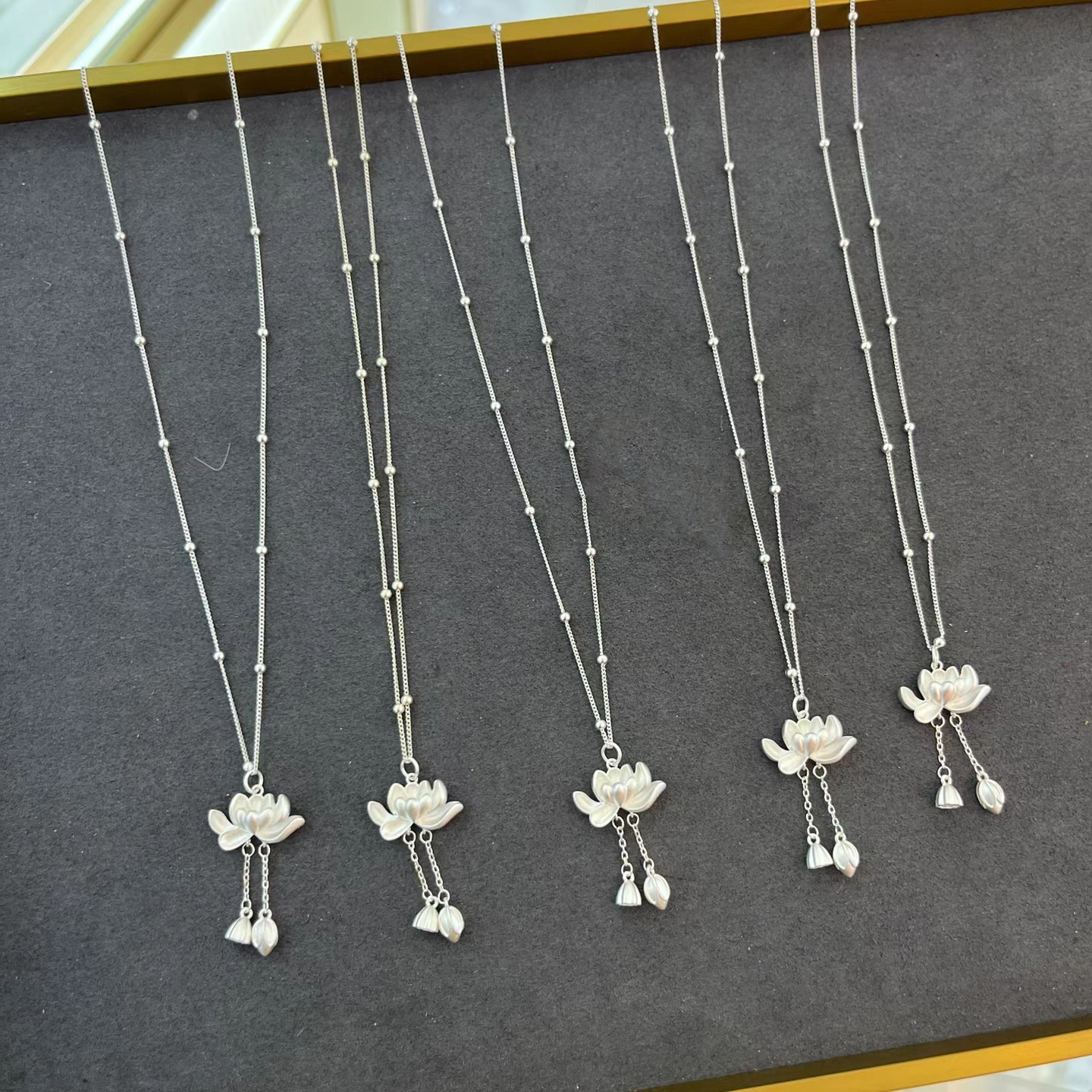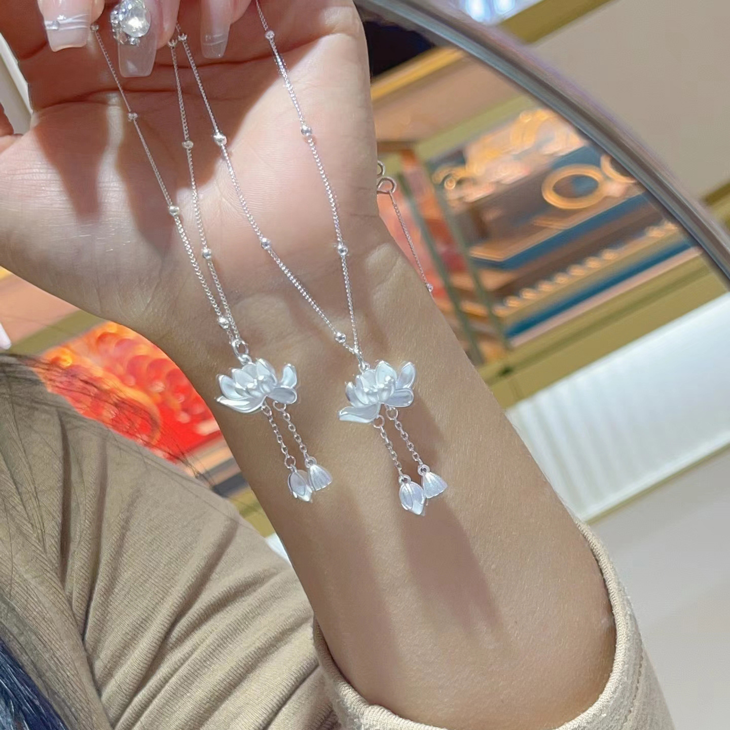 Tassel Lotus Necklace Girls Niche Design All-match High-end Sense ins Style New Chinese Lotus Clavicle Chain Wholesale