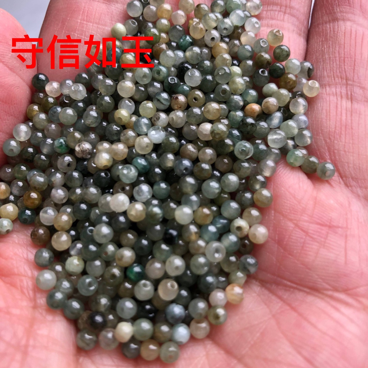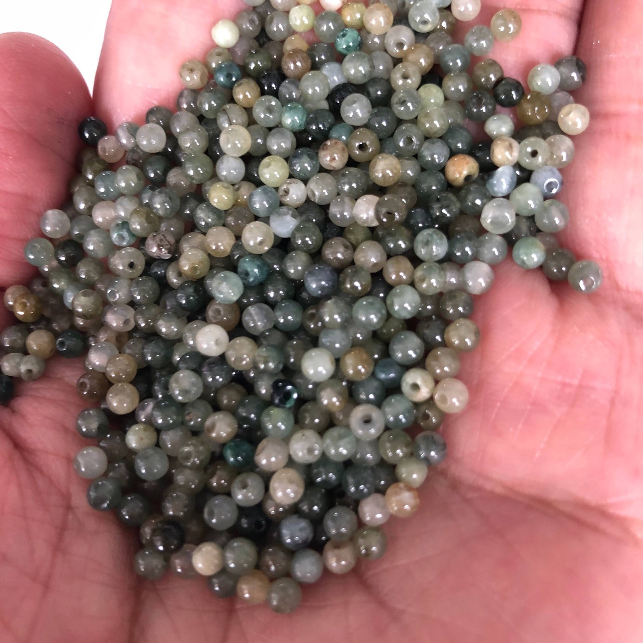 Natural jadeite A goods loose bead oil green 4mmDIY defective product texture black line not round cheap goods processing