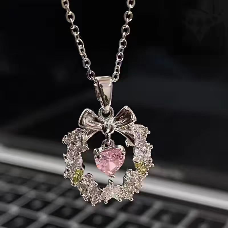 Love wreath bow necklace women's clavicle chain light luxury niche high-end design necklace ins student girlfriends