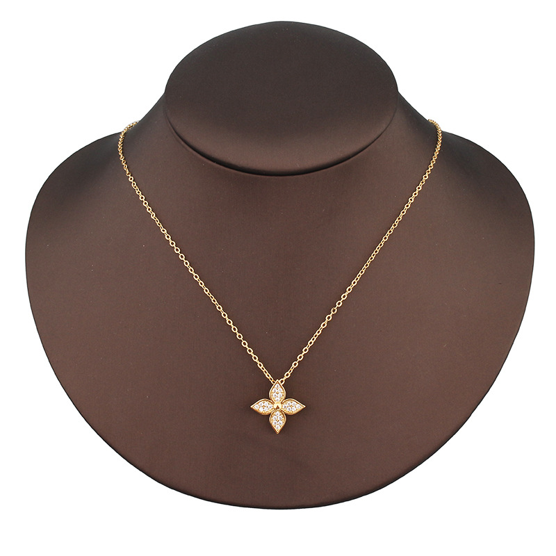 Bohemian gold-plated flower earrings necklace ring small luxury jewelry suit diamond clover jewelry wholesale