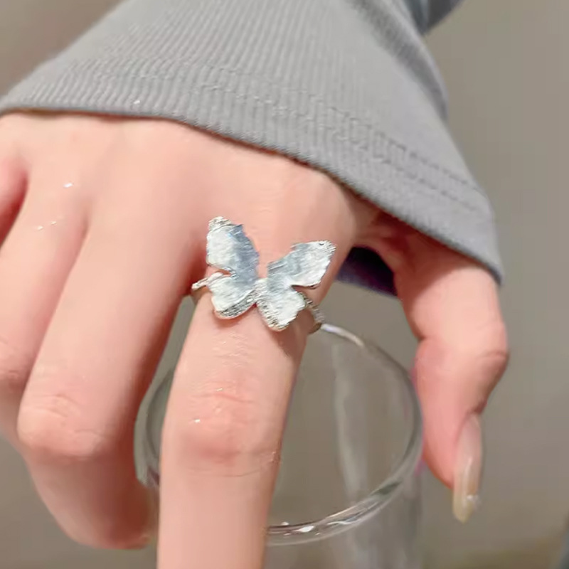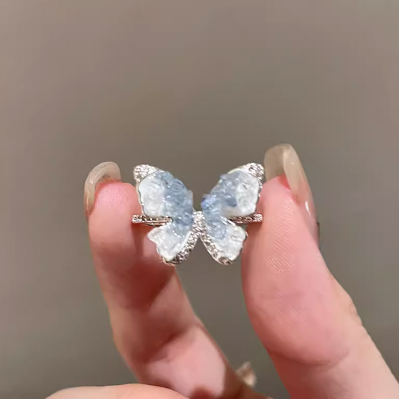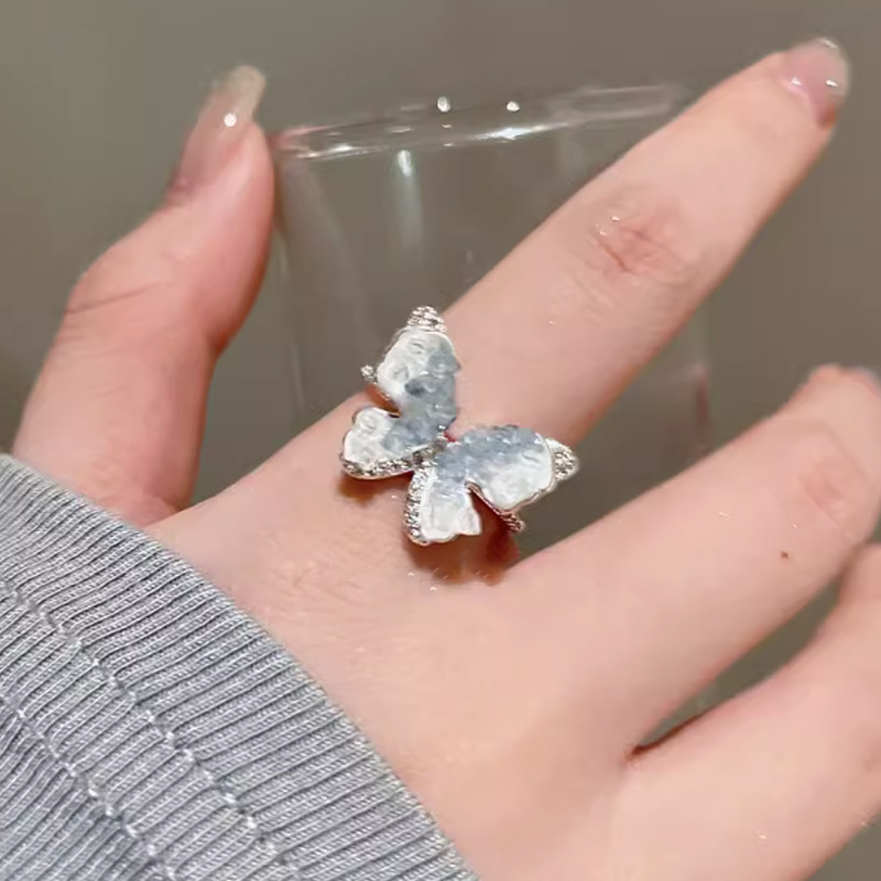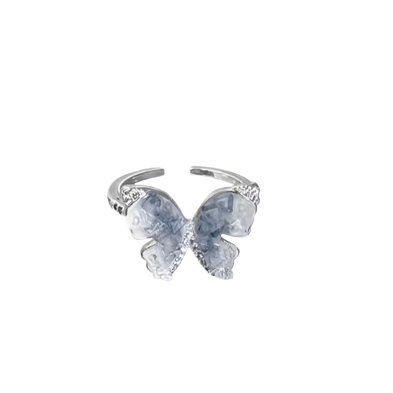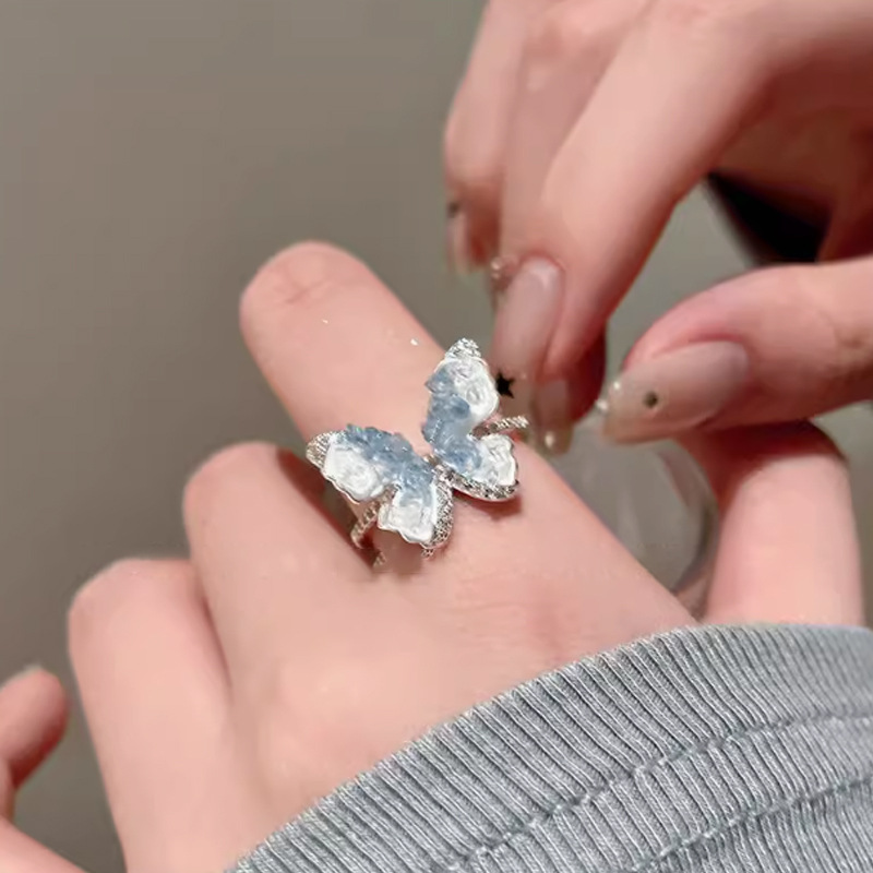 Blue Ice Butterfly Open Finger Ring Summer Niche Design Light Luxury Ring 2024 New Explosions Ring