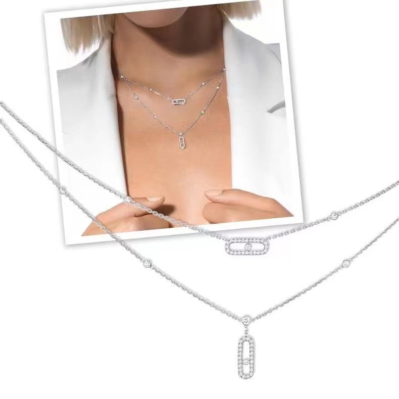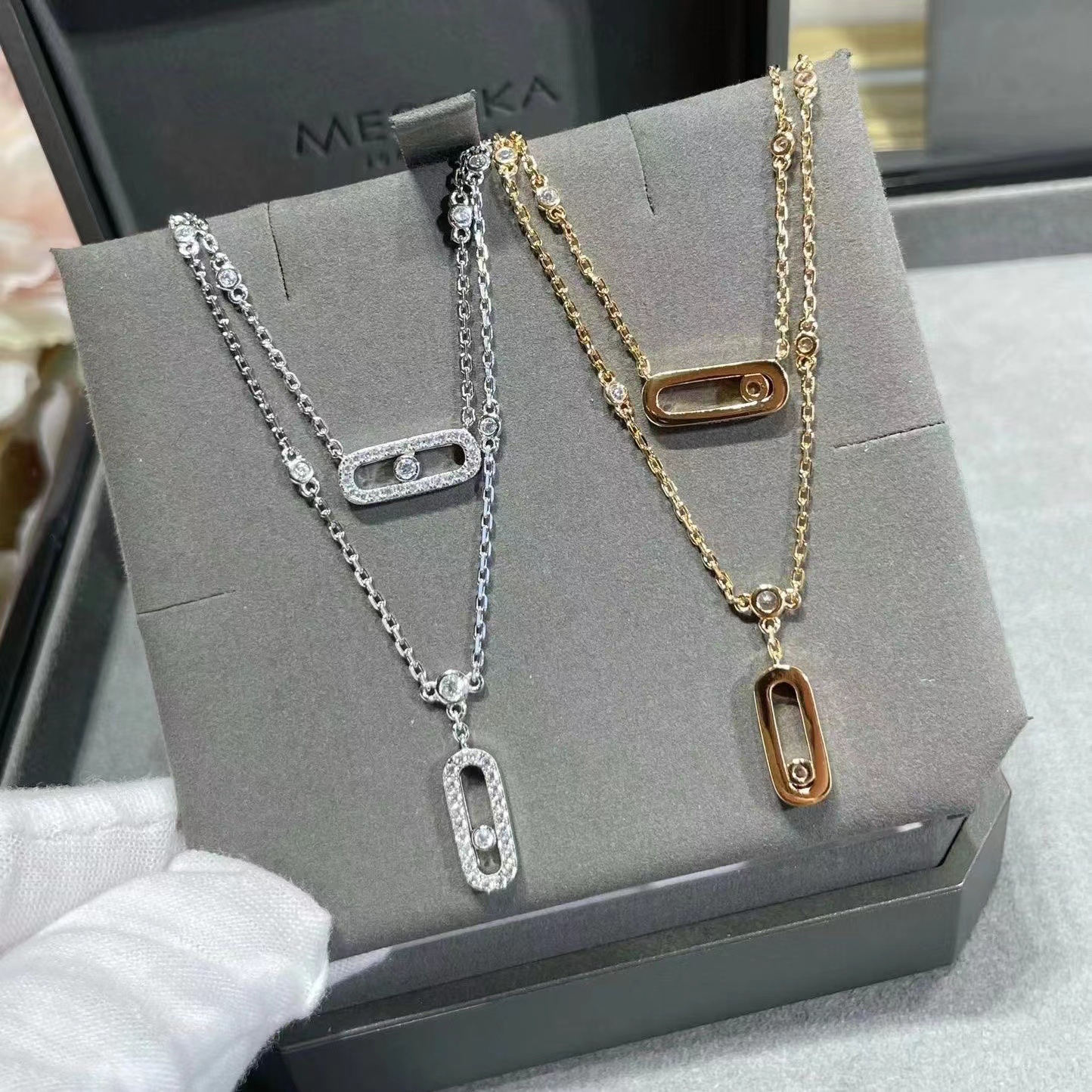 Meijia Necklace for Women, Double-Layer Tassel Pendant, Full of Diamonds, Sliding Design, 18K Rose Gold, High-End Versatile Clavicle Chain