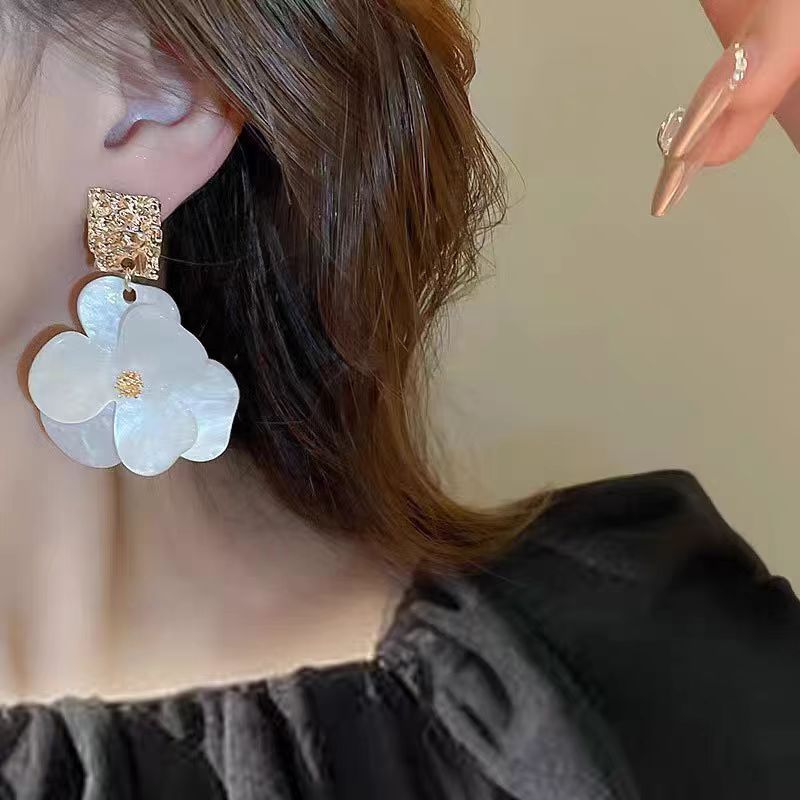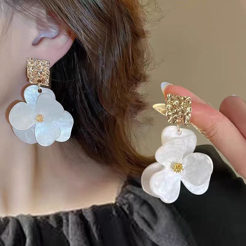 French Vintage Acrylic Flower Earrings Sweet Temperament High-end Sense Earrings Personalized Hong Kong Style All-match Trendy Cool Earrings