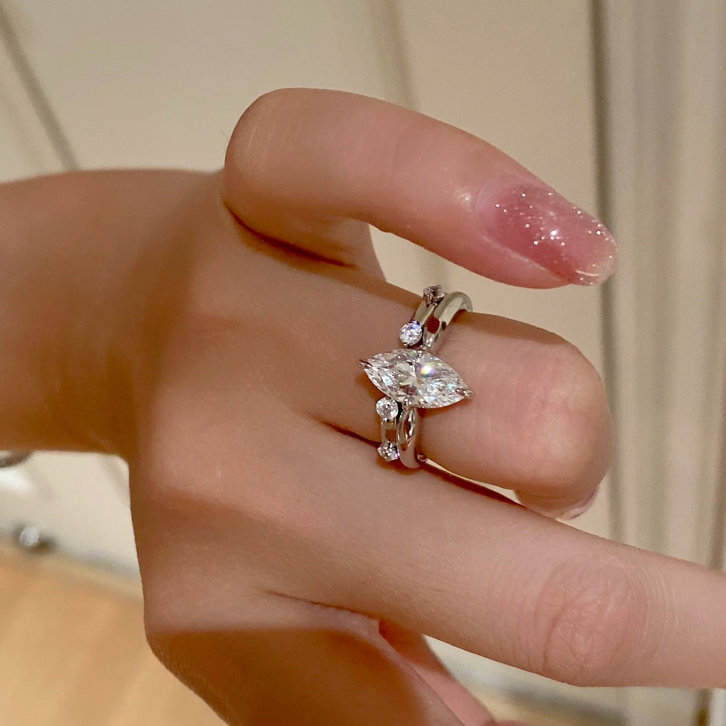 Little Red Riding Book Same Style Instagram Minimalist Three-in-One Stack Wear Ring Brilliant Super Flash Horse Eye Zircon Open Ring for Women