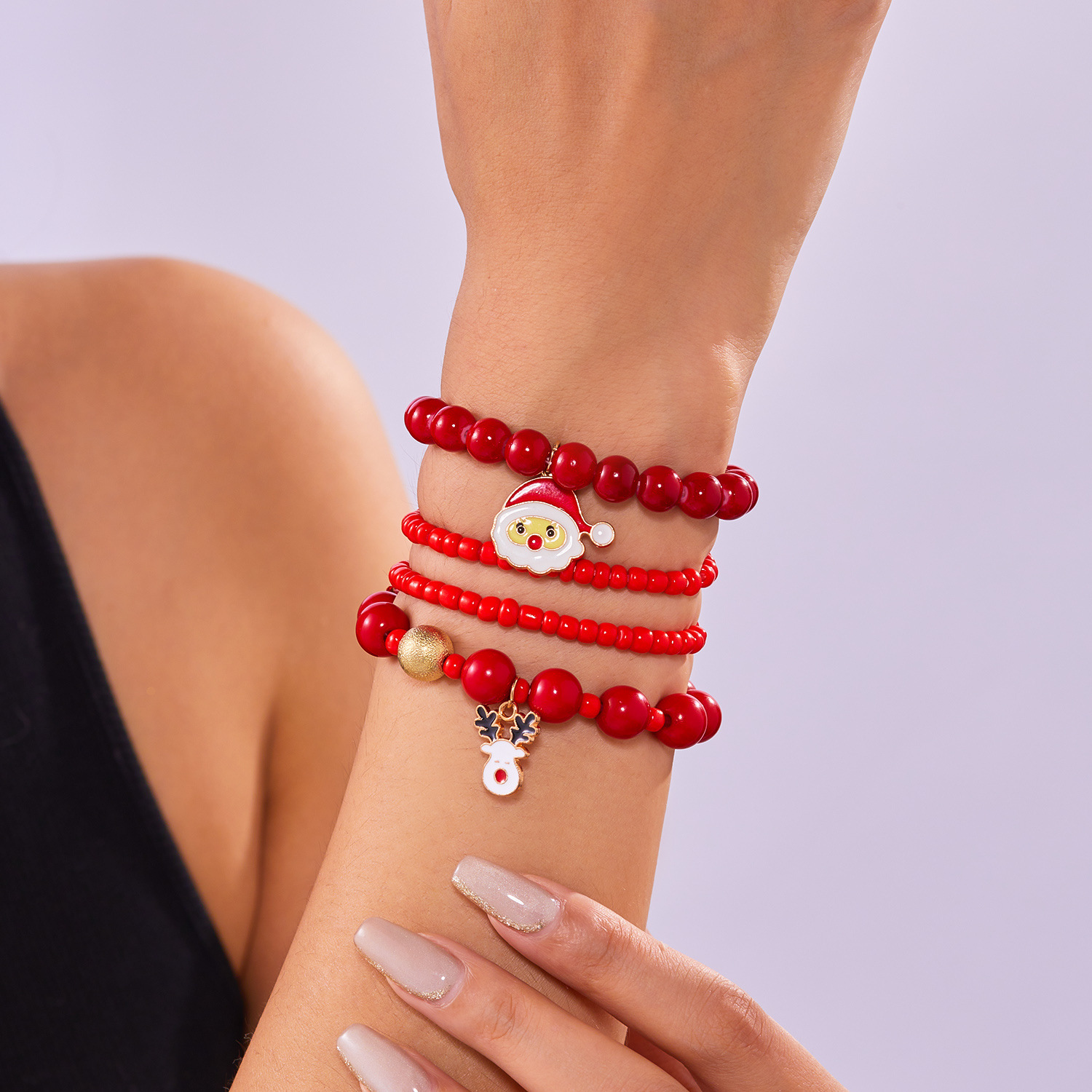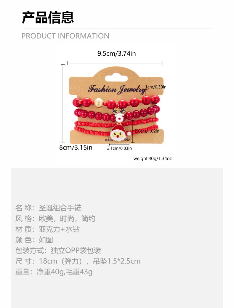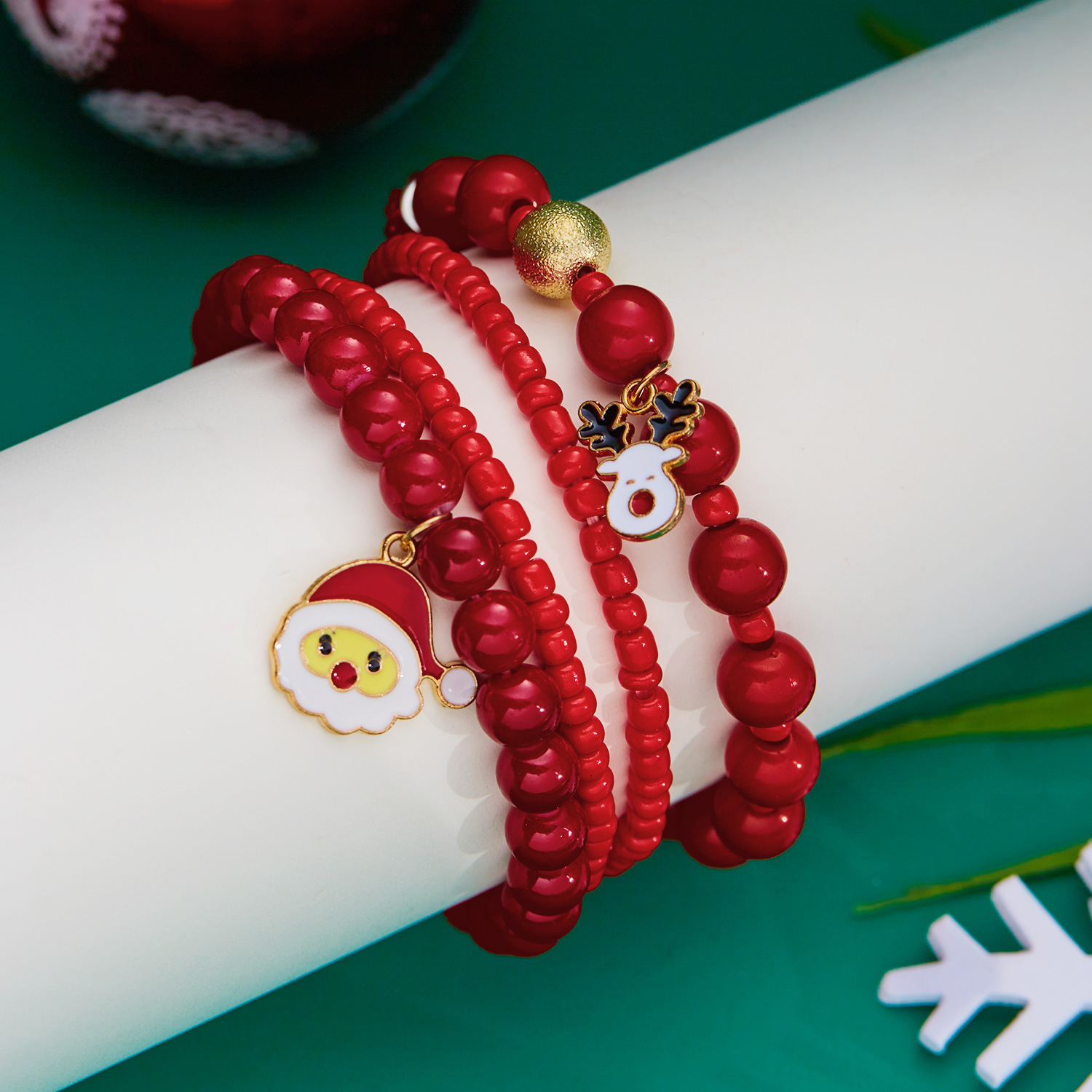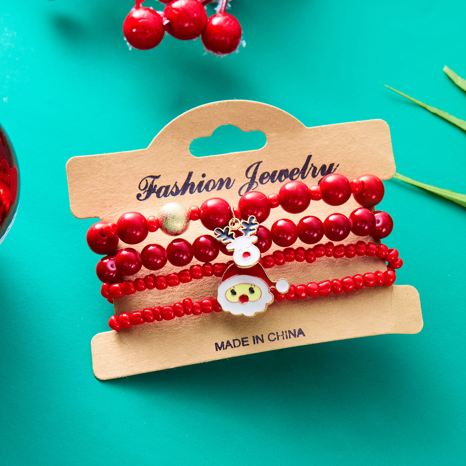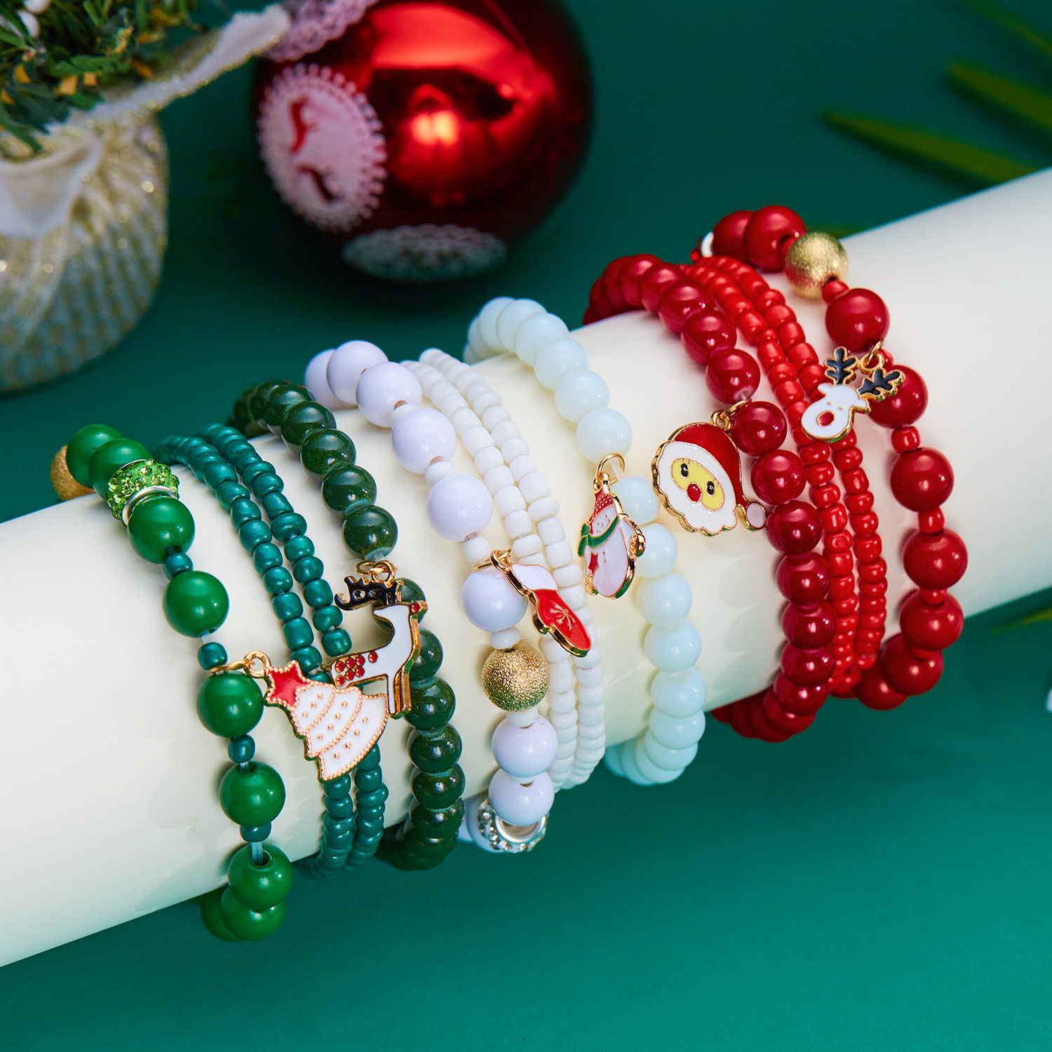 European and American Christmas Bracelet Fashion Color Acrylic Diamond Snowflake Bell Elastic Beaded Bracelet Christmas suit