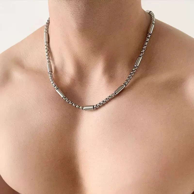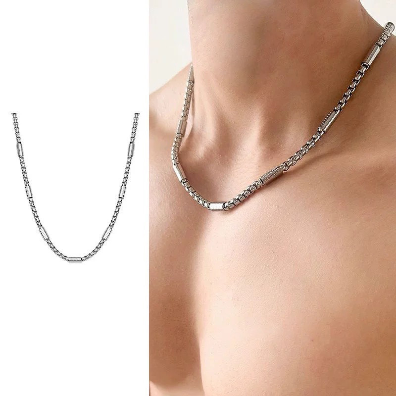 Simple Basic Titanium Steel Necklace Men's Trendy Hip-hop Non-fading Personality All-match Hong Kong-style Woolen Chain Necklace Accessories Women