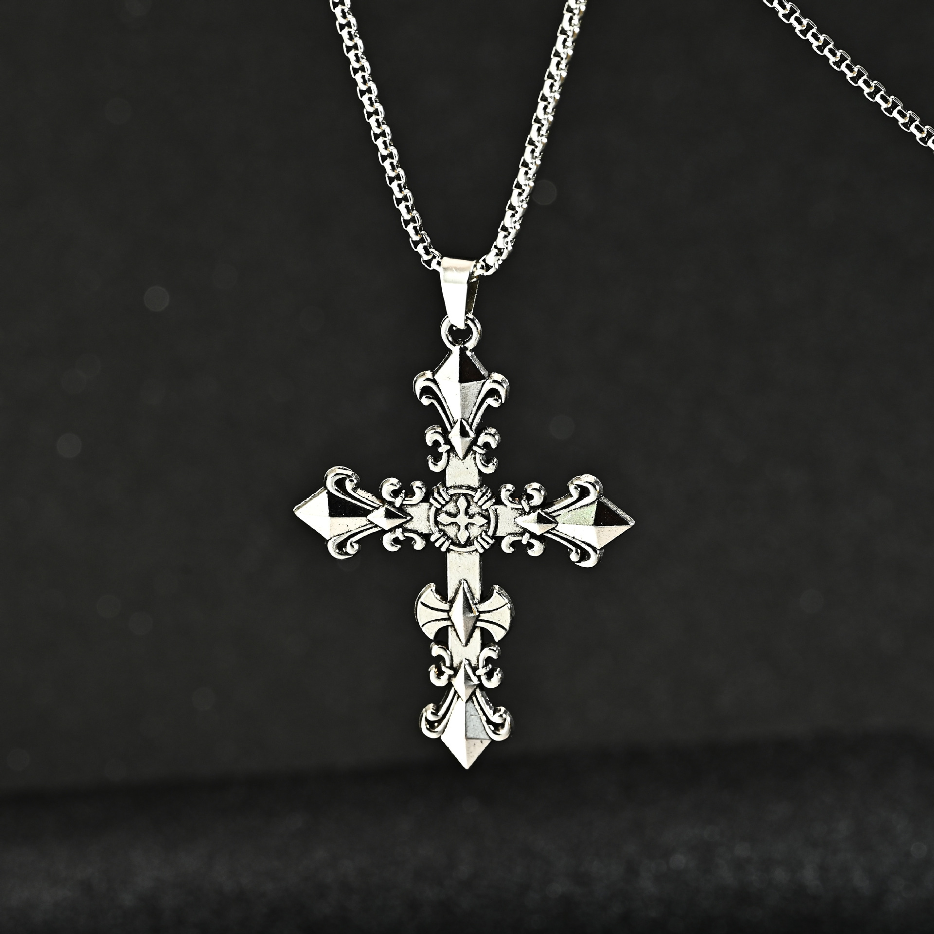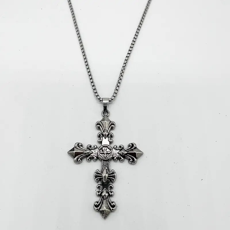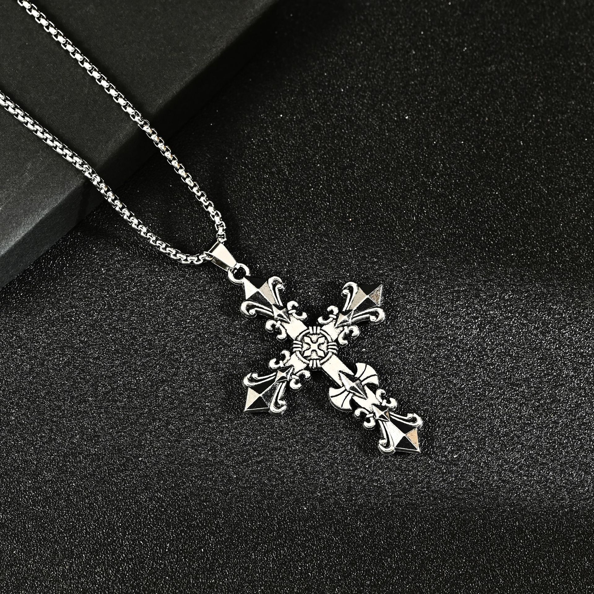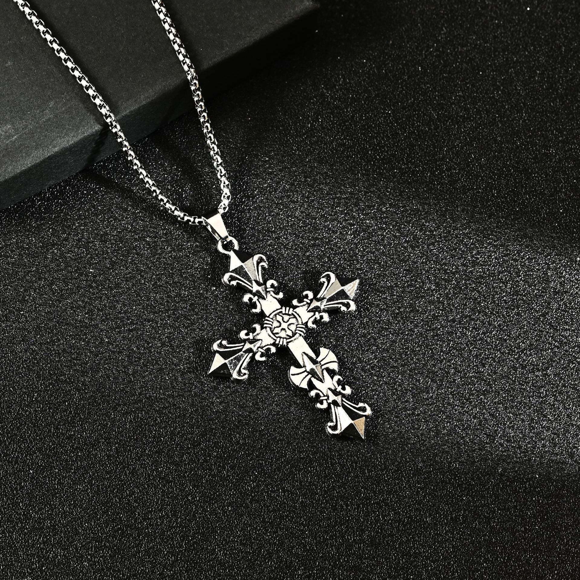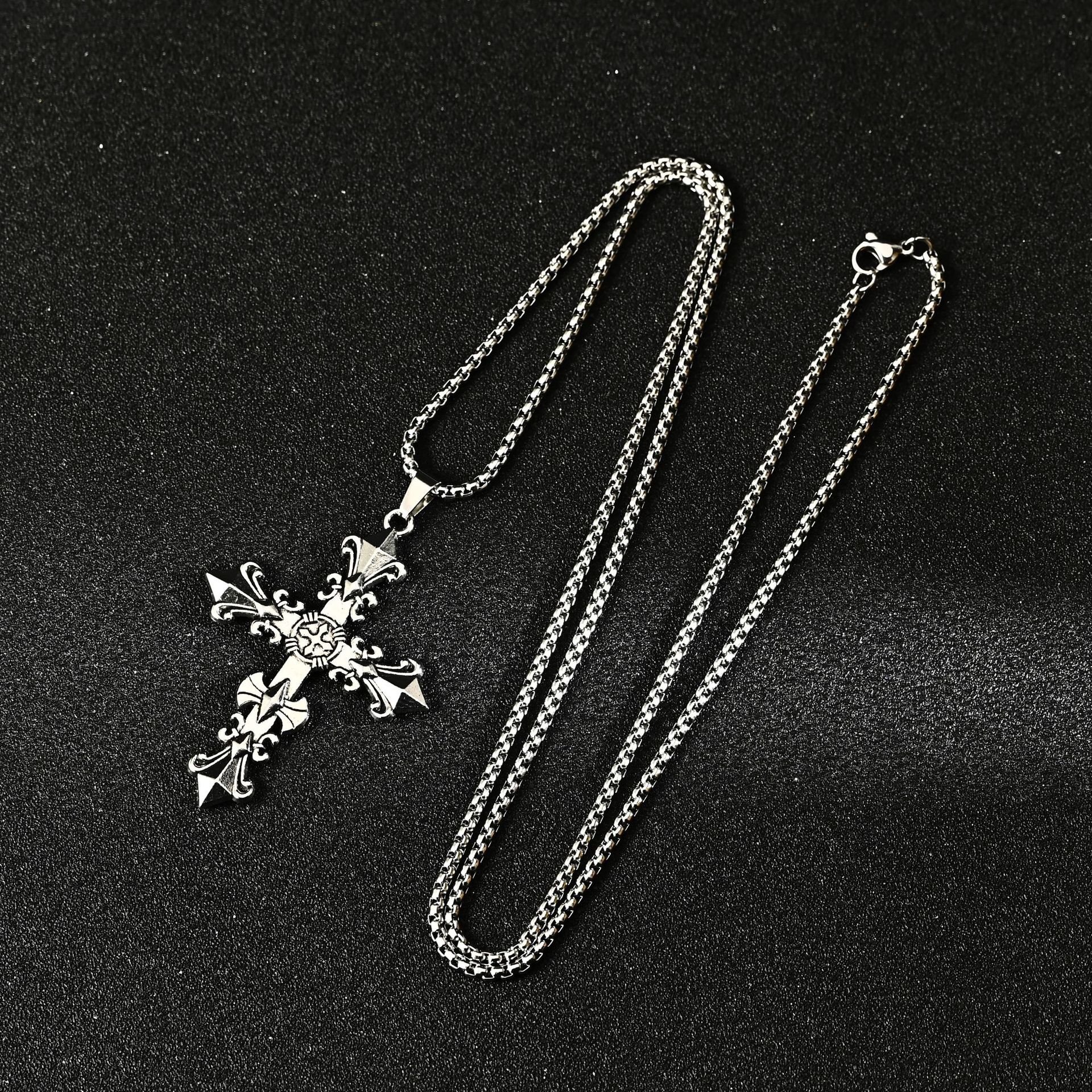 Factory wholesale direct selling new retro European and American cross flower pendant cross men's personality titanium steel necklace