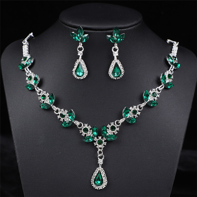 Color: Silver bottom green roland necklace + earring pin [alloy style]