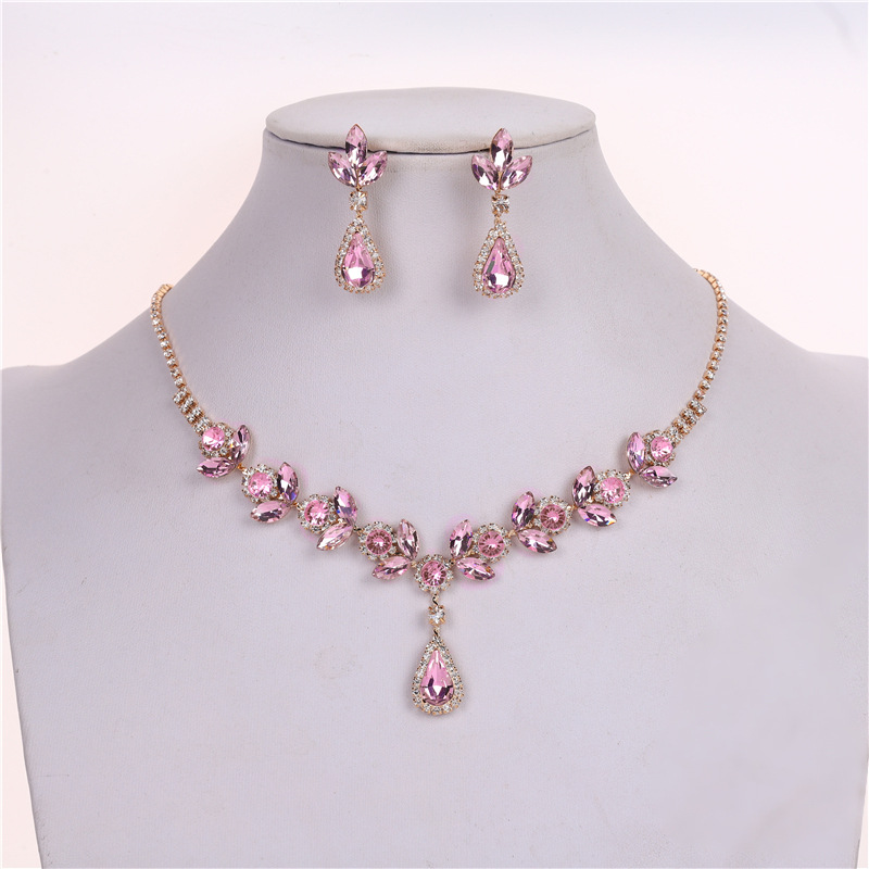 Color: Gold base pink roland necklace + earring pin [alloy style]