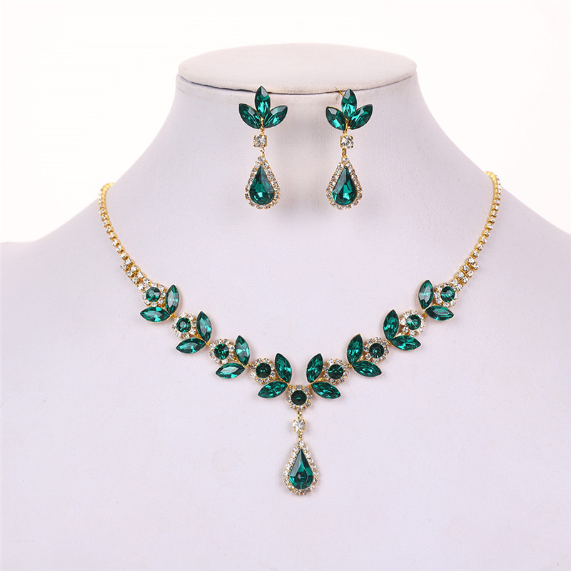Color: Gold background green roland necklace + earring pin [alloy style]