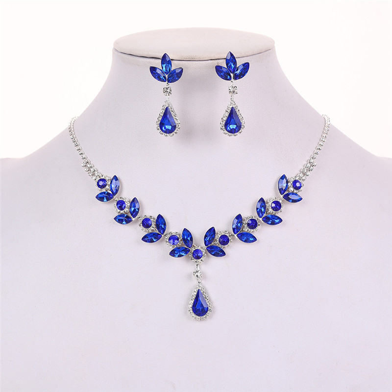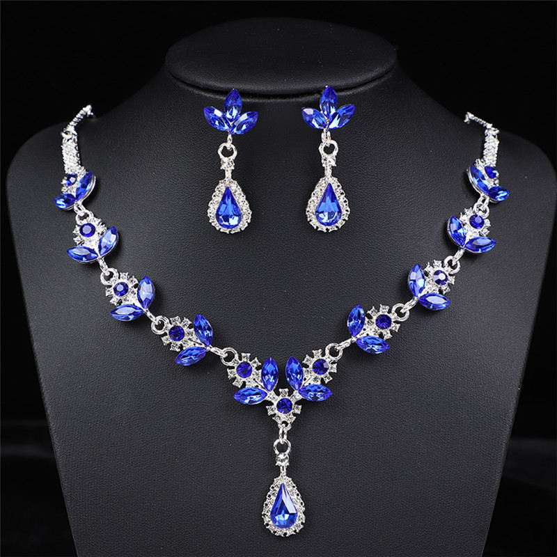 Color: Silver bottom blue roland necklace + earring pin [alloy style]