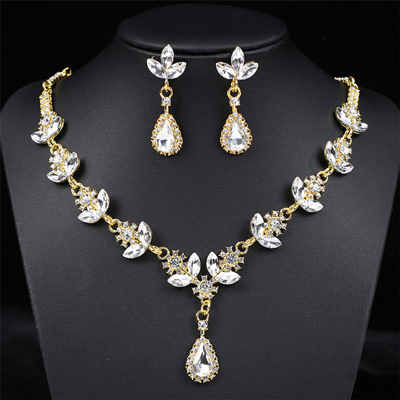 Color: Gold and white diamond roland necklace + earring pin [alloy style]