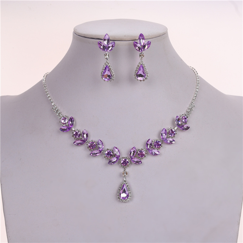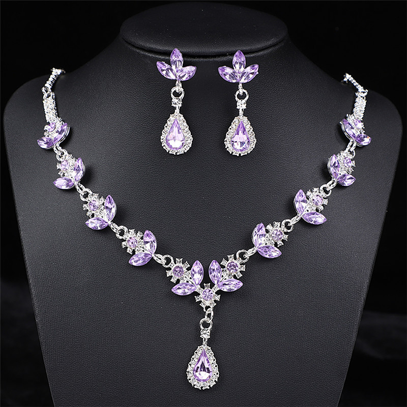 Color: Silver violet necklace + earring pin [alloy style]