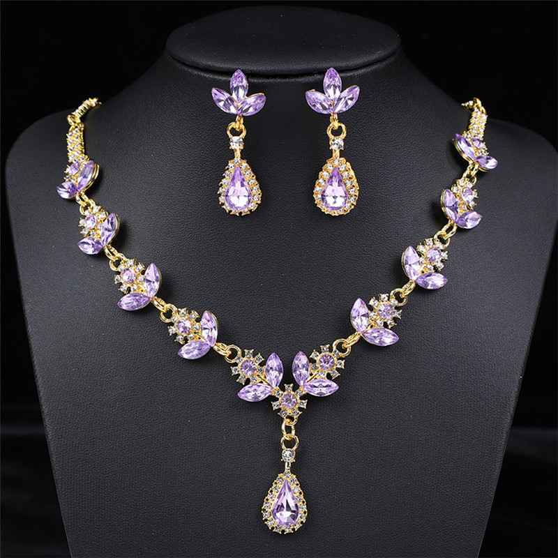 Color: Golden violet necklace + earring pin [alloy style]