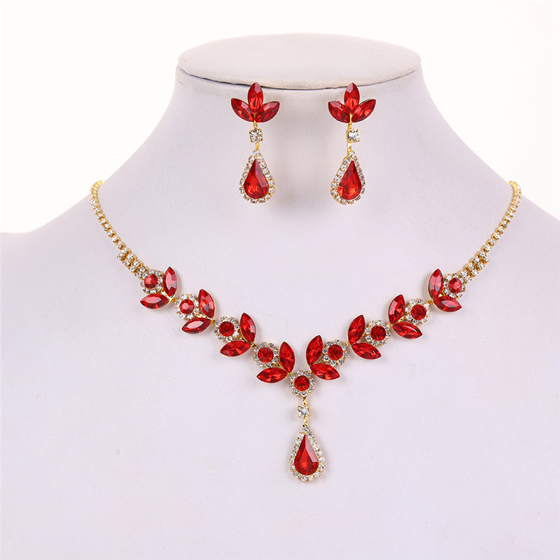 Color: Gold-backed red roland necklace + earring pin [alloy style]