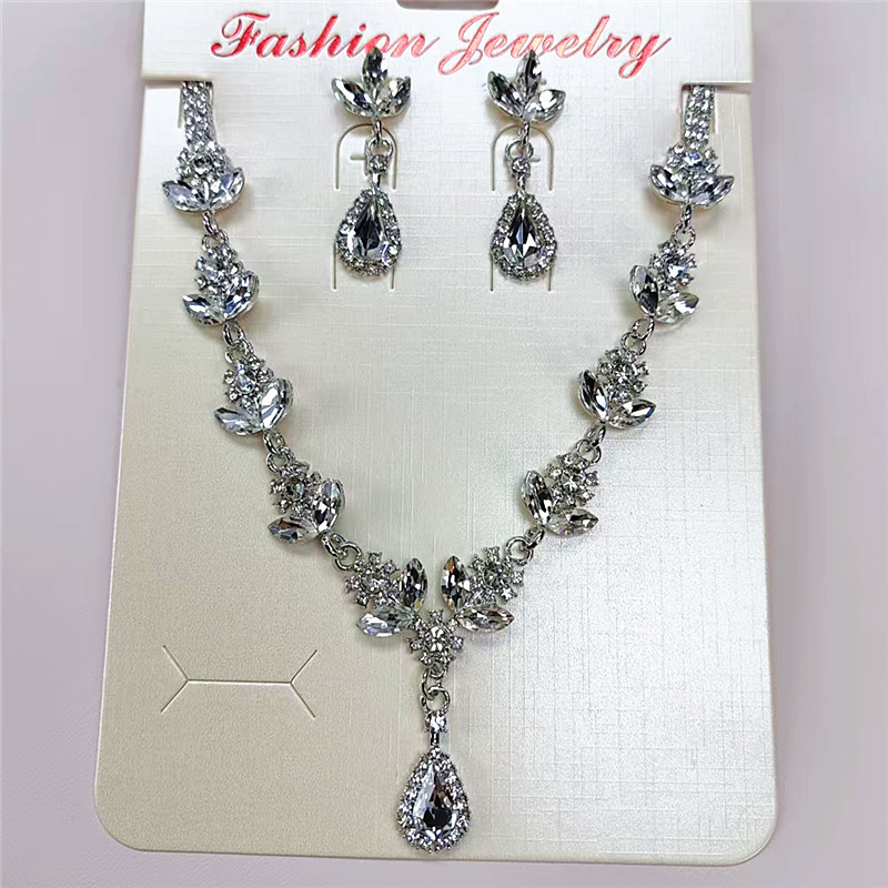 Color: Silver white diamond roland necklace + earring pin [alloy style]