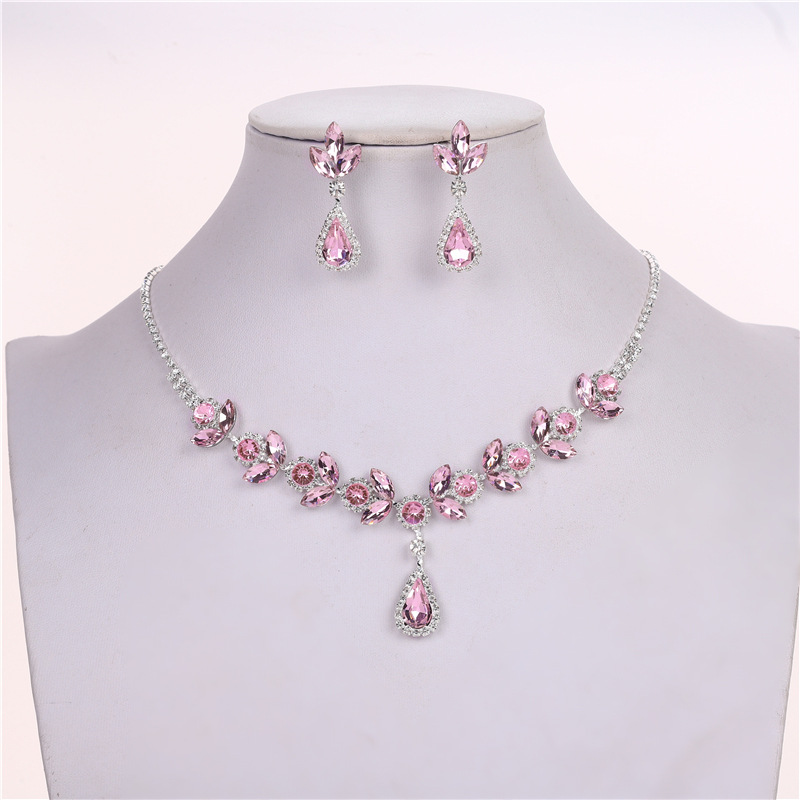Color: Silver base pink roland necklace + earring pin [alloy style]