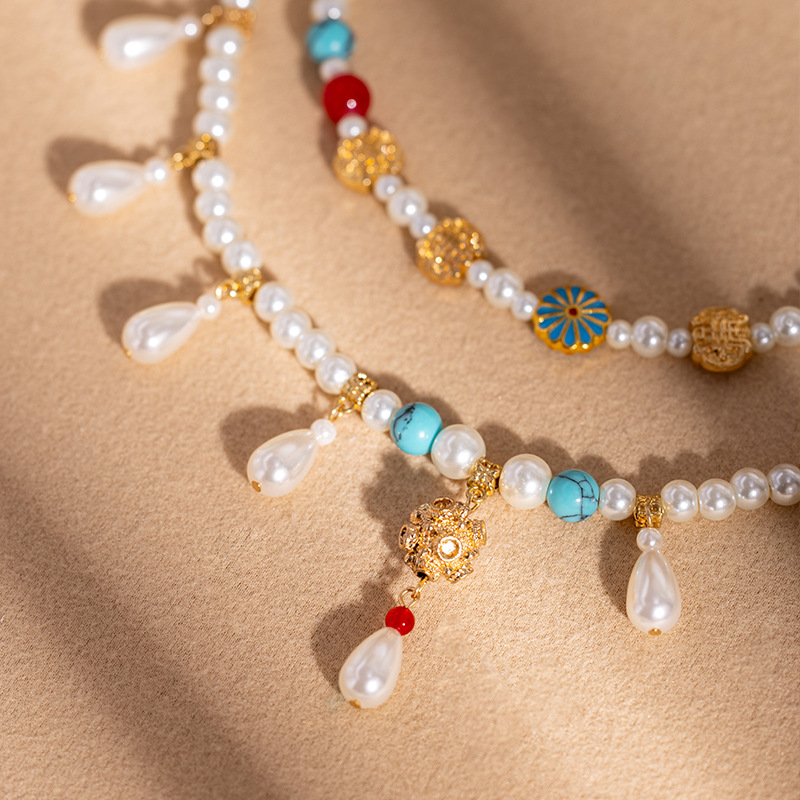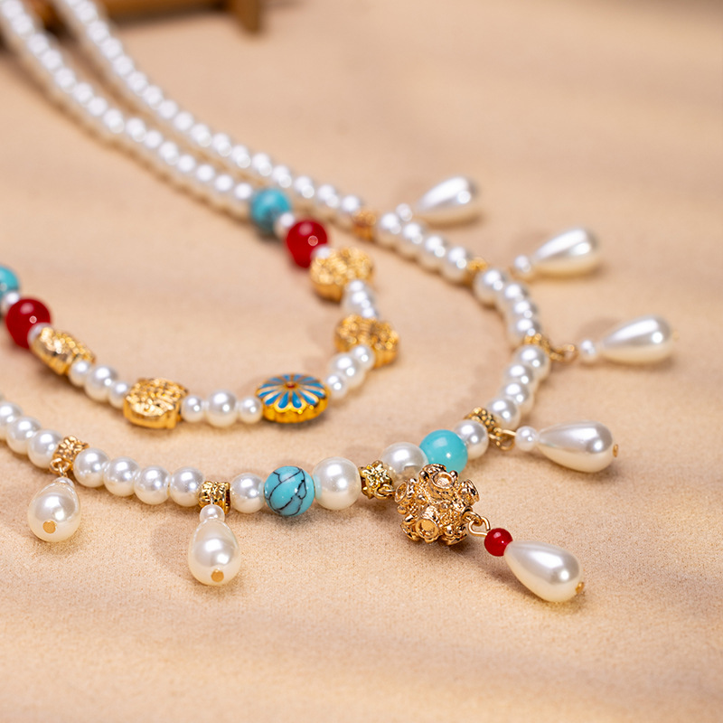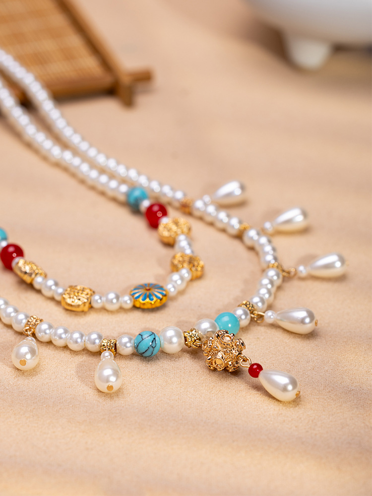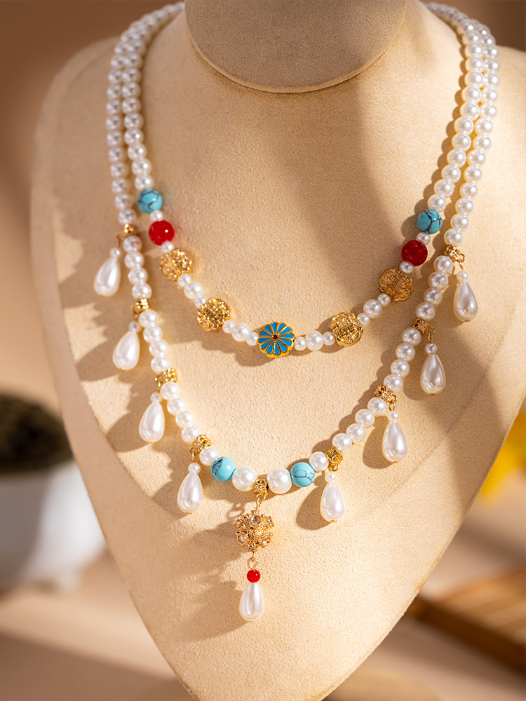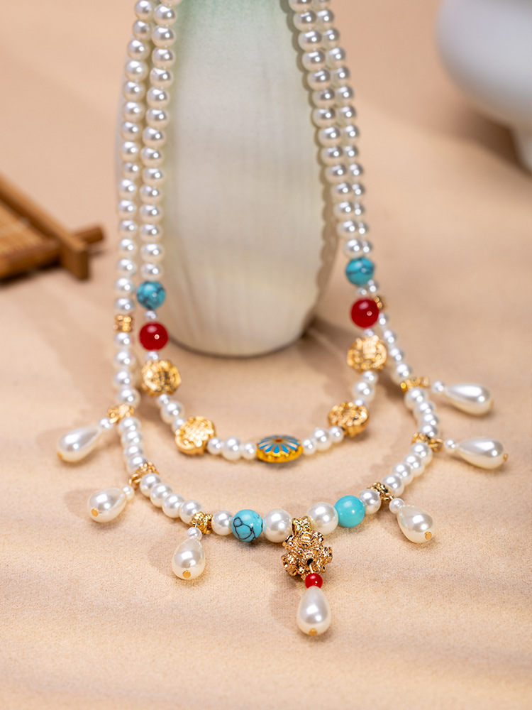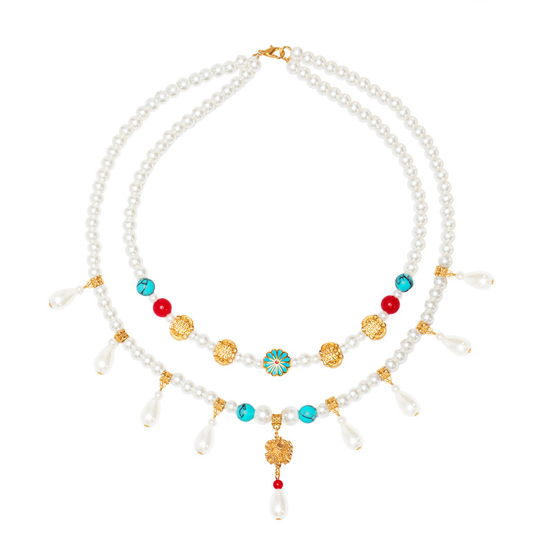 Hanfu New Chinese Necklace Pearl Wreaths Double-layer Antique All-match Temperament Clavicle Chain National Style Ancient Dress Cheongsam Accessories
