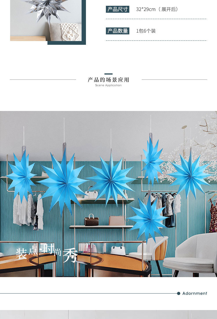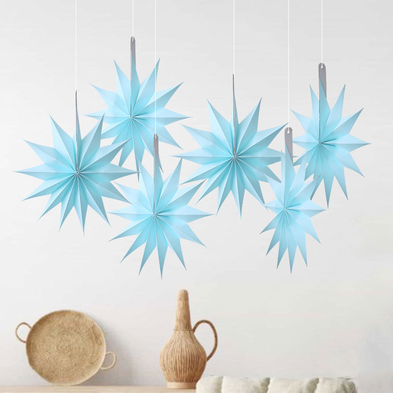 color: 30cm star hanging ornaments-lake blue (1 pack of 6 pieces)