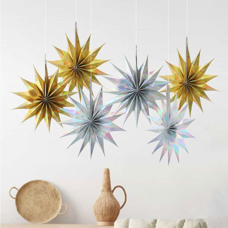 color: 30cm star hangings-gold and silver mixed colors (1 pack of 6 pieces)