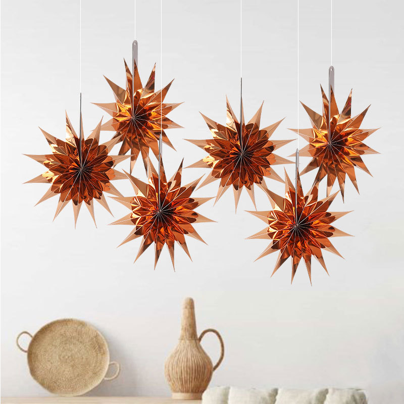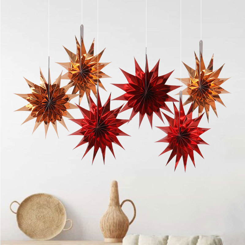 color: 30cm mirror star pendant-bronze + red (1 pack of 6 pieces)