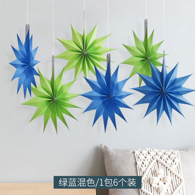 color: 30cm star hangings-green and blue mixed colors (1 pack of 6 pieces)