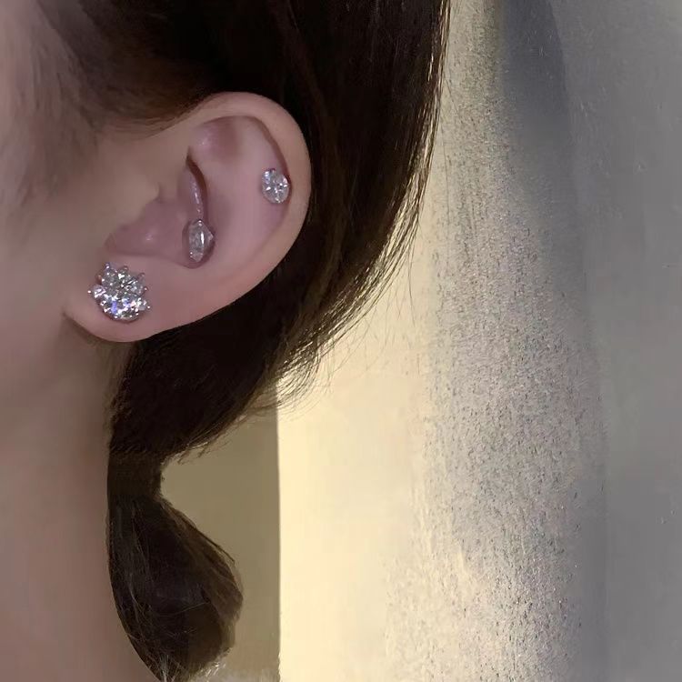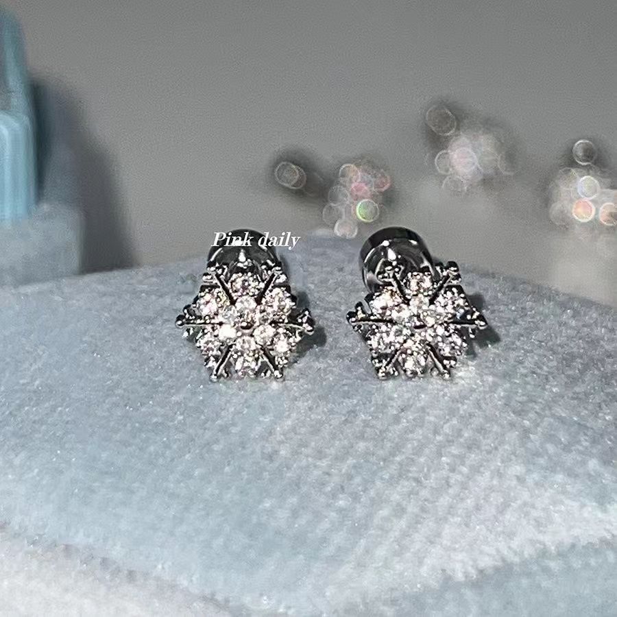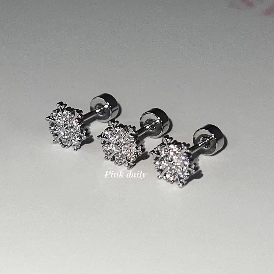 Winter Snowflake Zircon Screw Earrings for Men and Women 2024 Sweet Cool Style Niche Unique Ear Bone Nail Earrings