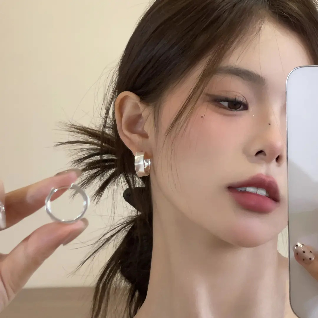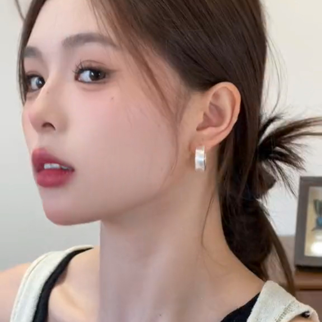 Wire-drawing Silver Ear Ring S925 Silver Needle Earrings Textive Ear Buckle Exquisite Simple All-match Hot Selling Hot Ear Ring