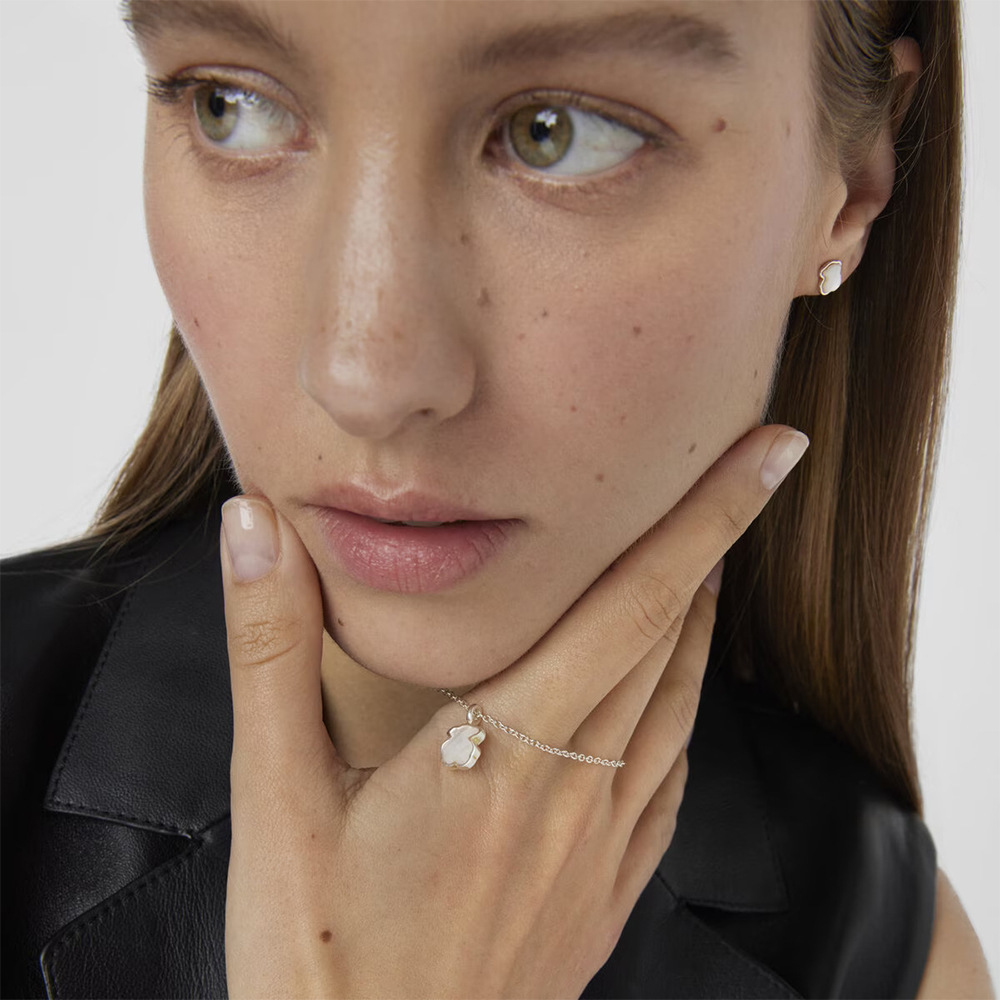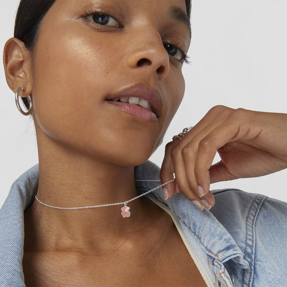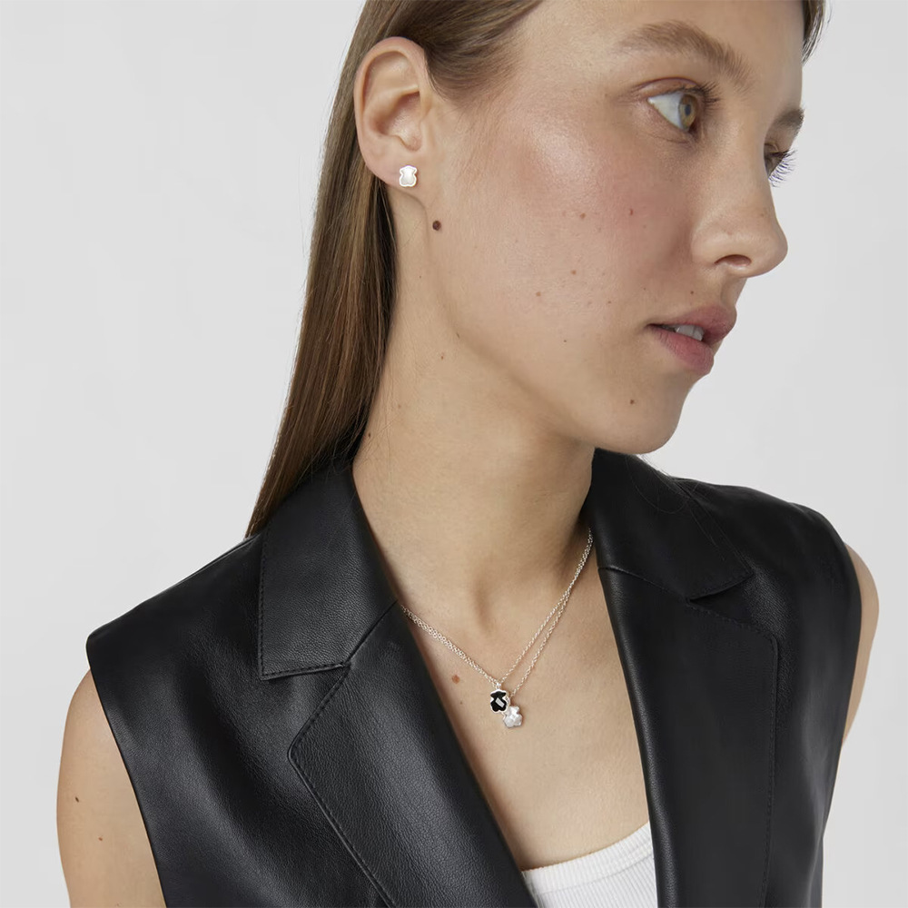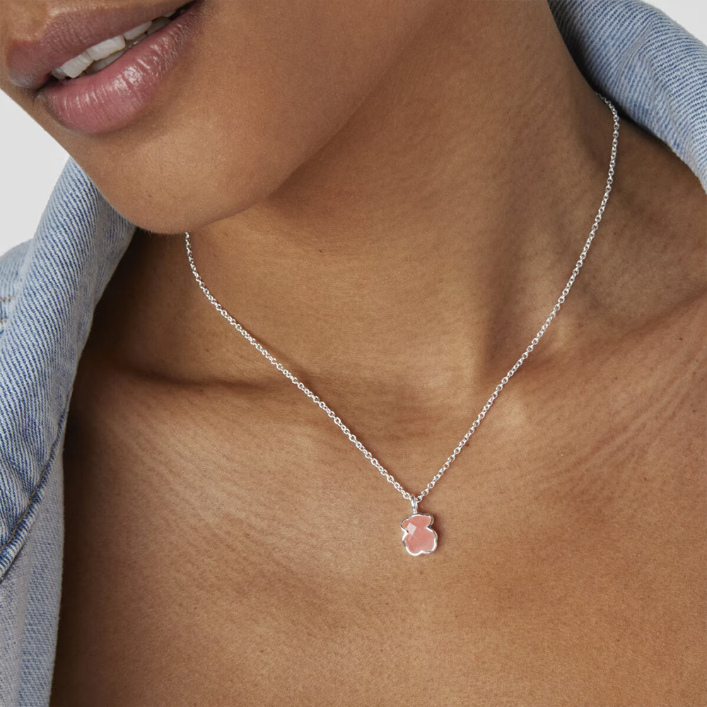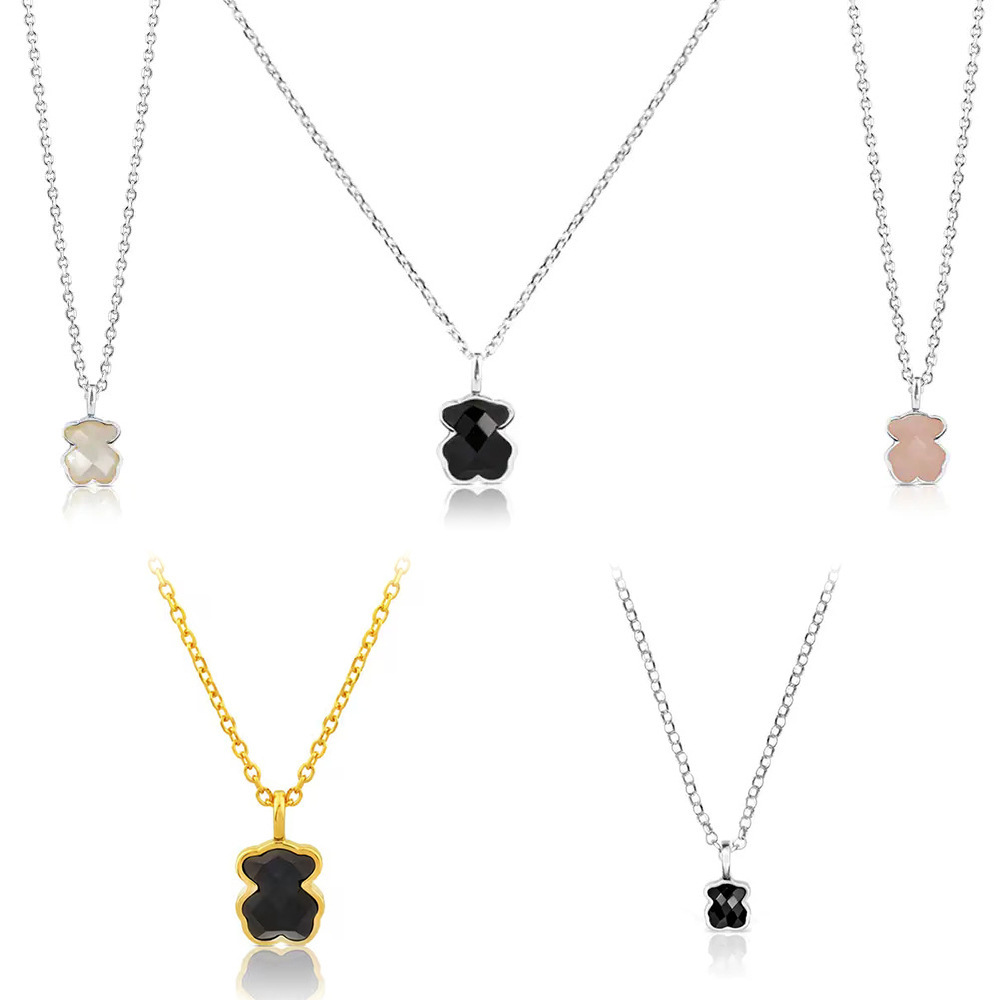 Item No.: Gem, mother, black onyx, bear, necklace, peach bear necklace